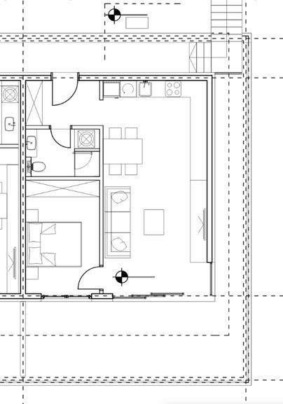 Sastoji se od “open space” dnevnog boravka s kuhinjom i blagovaonicom, izlazom na terasu, 2 spavaće sobe, 1