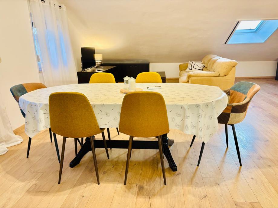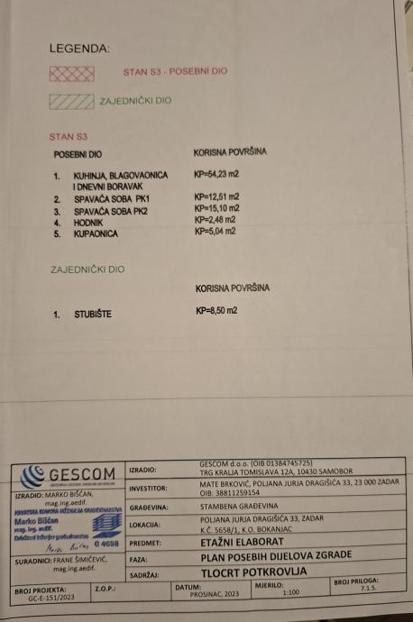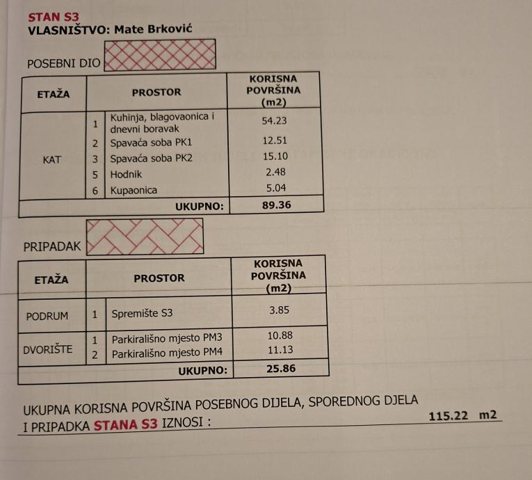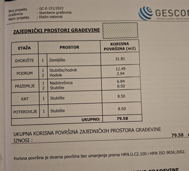 -stan 89.36m² a posto je visoko potkrovlje cca70m² je iznad 2m visine.
