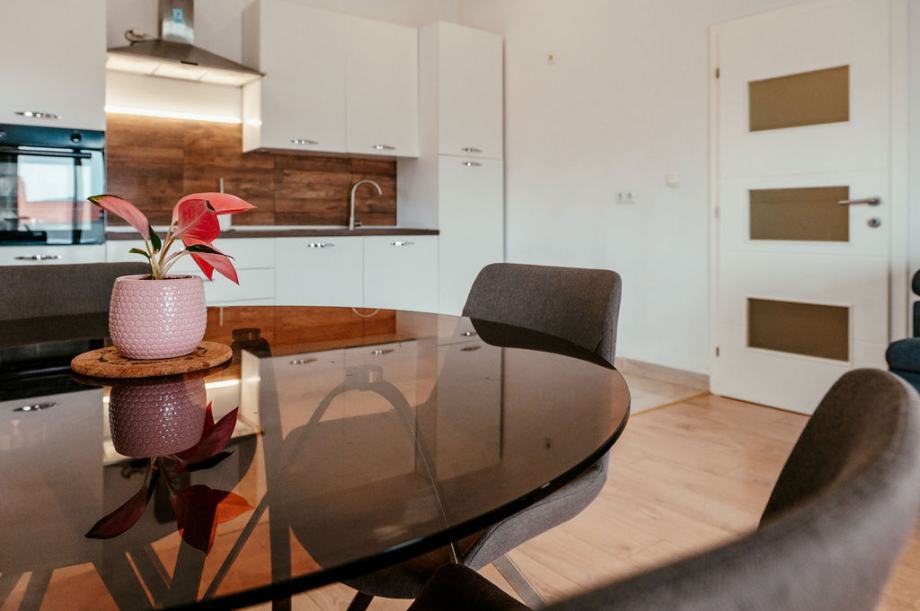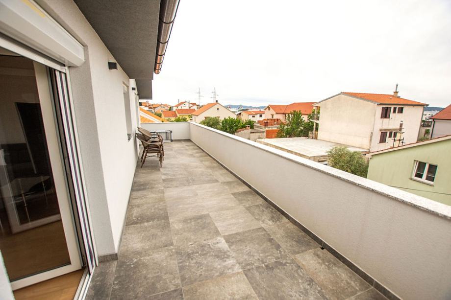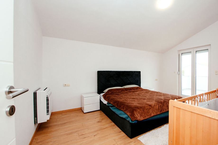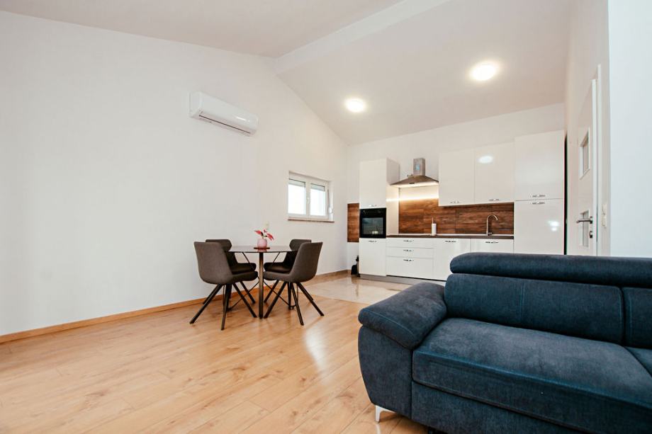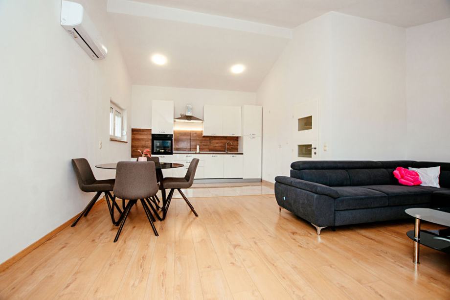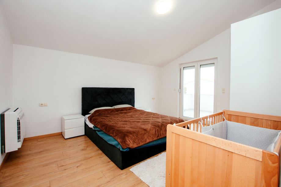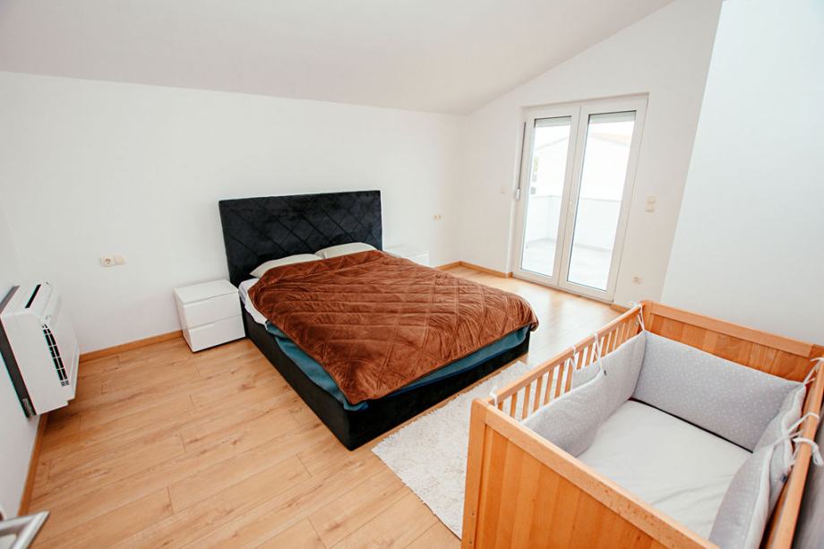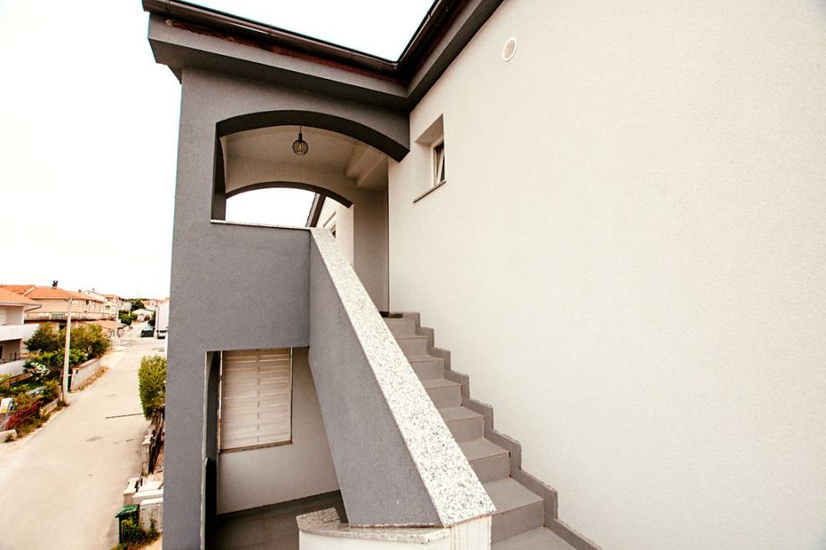 Prodaje se komforan dvosoban stan sa dva parkirna mjesta, na vrhu manje stambene zgrade koja se sastoji od tri etaže. Nekretnina se sastoji od 75,74 m2 unutarnjeg stambenog prostora, 25 m2 balkona i 25 m2 parkirnog prostora. Stan se sastoji od dvije spavaće sobe od kojih jedna ima izlaz na balkon, velikog hodnika, kupaone sa walk in tušem, open space kuhinja i dnevni boravak sa izlazom na balkon s pogledom na more. Južno orijentiran sa mnogo prirodnog svjetla tijekom cijelog dana. Posljednja renovacija zgrade pa tako i samog stana izvršena je 2023. godine, promijenjeno krovište, električne i vodovodne instalacije, postavljena stiropor fasada, provedena klimatizacija u svim prostorijama stana, promijenje podne obloge, nove rolete te zaštitne mrežice od komaraca na svim prozorima i balkonskim vratima. Stan je kompletno namješten s tim da postoji mnogo prostora za uređenje po vlastitom ukusu i potrebama, opremljen svim modernim apartima te potpuno funkcionalan za život. Stan se nalazi u mirnom kvartu Sinjoretovo, nedaleko od supermarketa, pošte, mesnice, autobusne stanice te nekoliko minuta automobilom do centra grada. Idealno za obitelj, iznajmljivanje ili bavljenje turizmom bez potrebe za većim dodatnim ulaganjima.