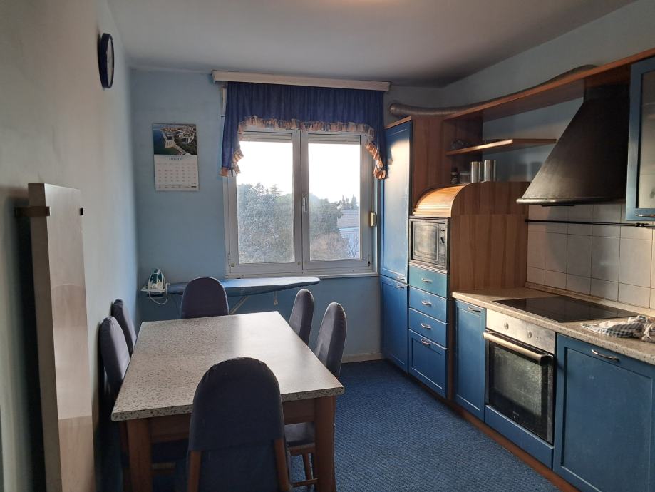 Trosobni komforan stan sa podzemnom garažom koja ima električna rolo vrata.