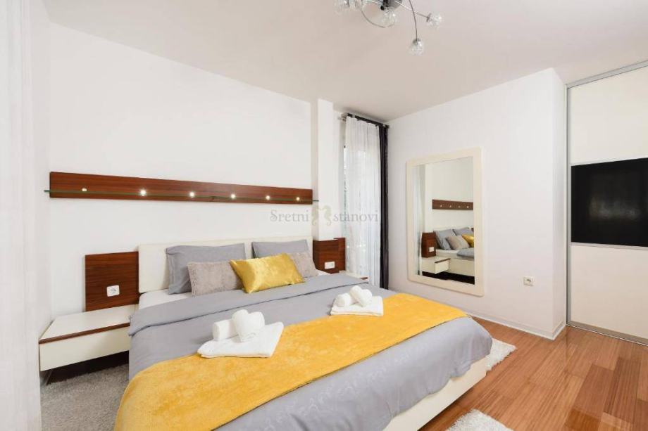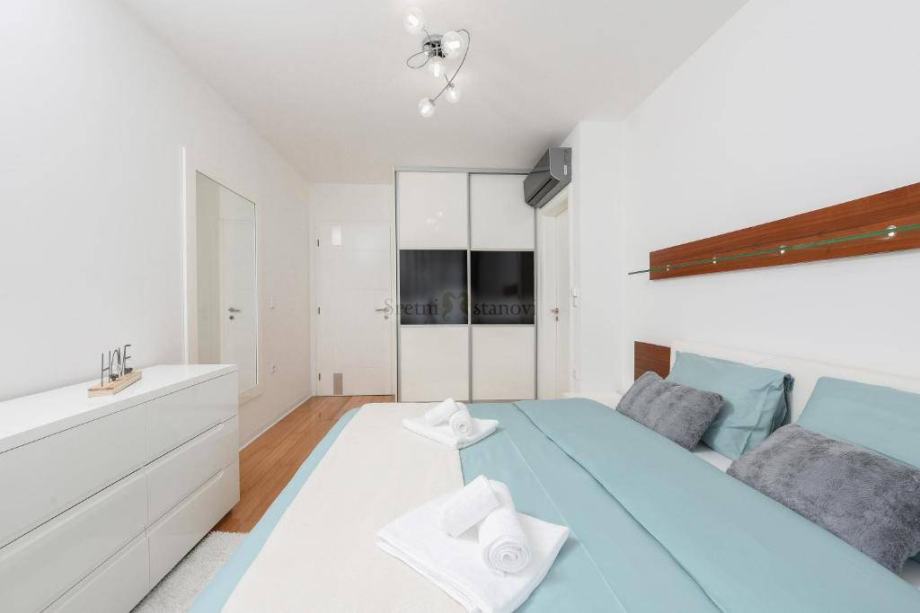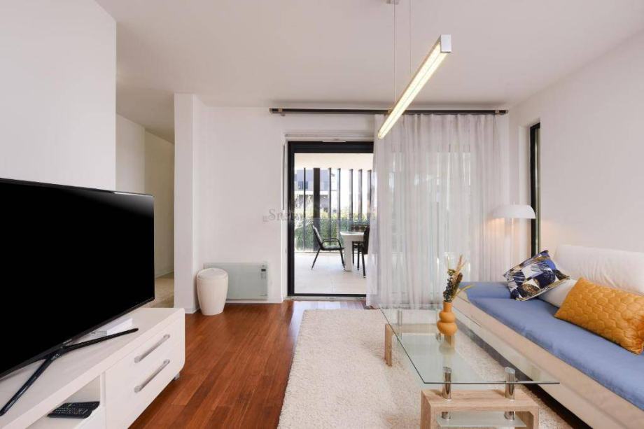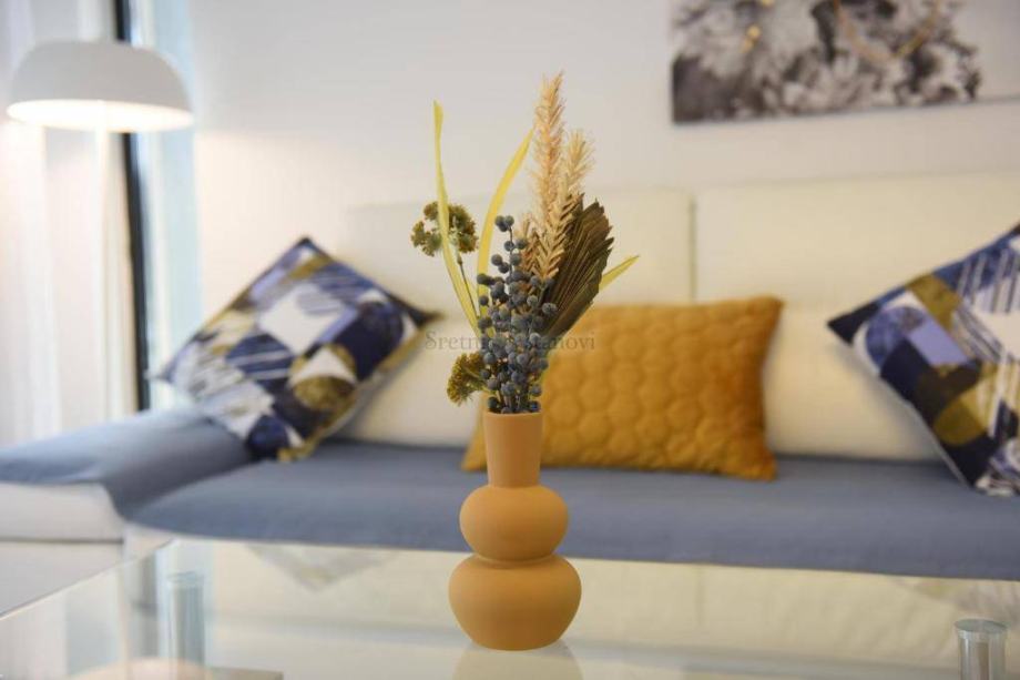 Sami stan ima 131,08 m2, a se sastoji od ulaznog hodnika, dnevnog boravka s kuhinjom i blagovaonom, 2 spavaće sobe, 2 kupaone, i dva natkrivena balkona od kojih jedan s jacuzzi kadom i jedan s djelomičnim pogledom na more.