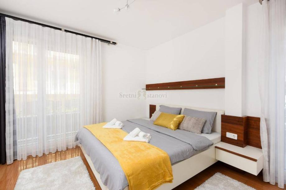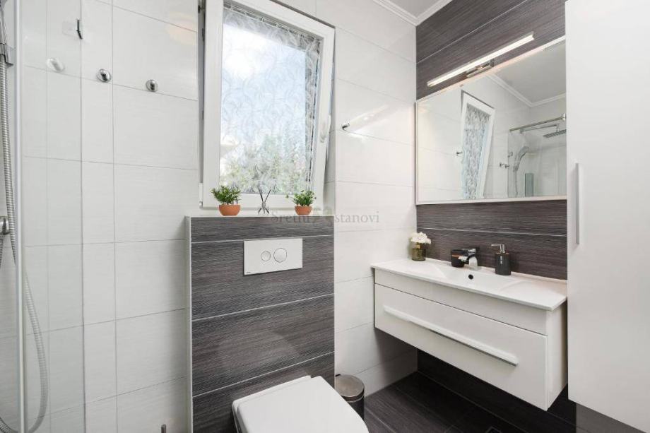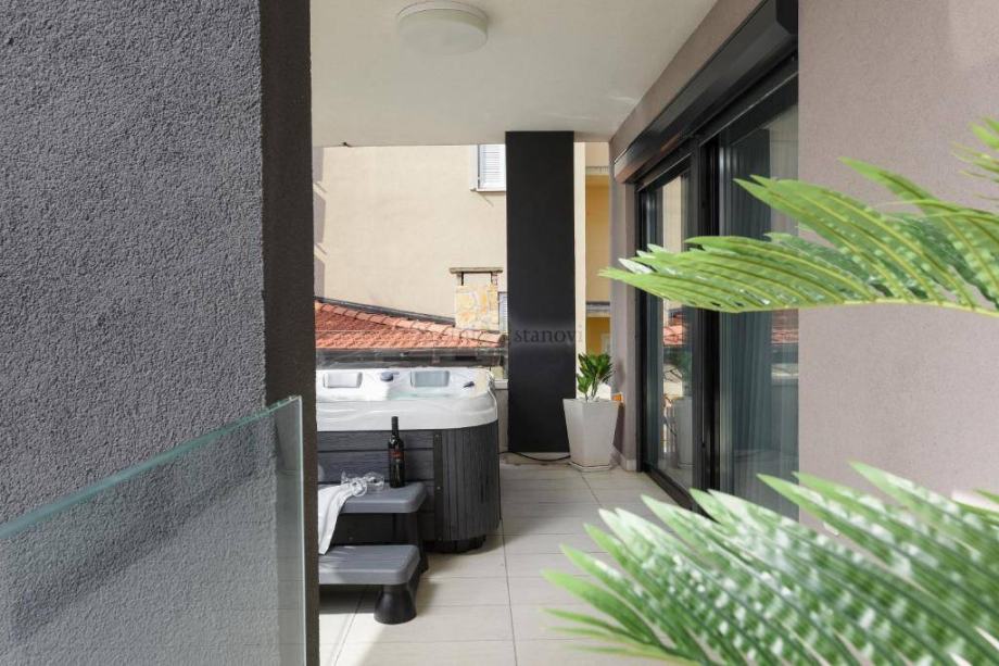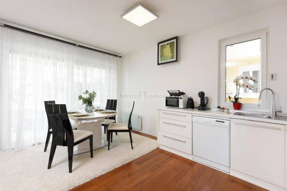 Stanu pripada i 117,99 m2 dvorišta u kojemu se nalazi i terasa s kamenim grill-om. Stanu ima 1 vanjsko parkirno mjesto, a u njegovu je okućnicu moguće je parkirati još 3-4 automobila.