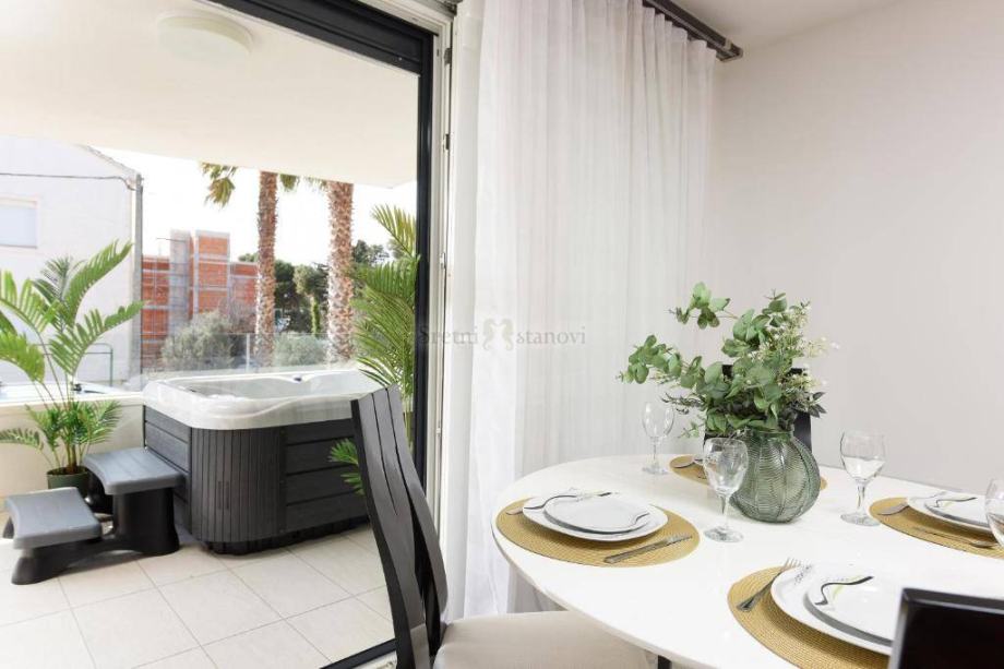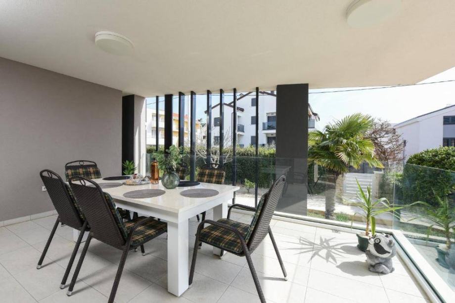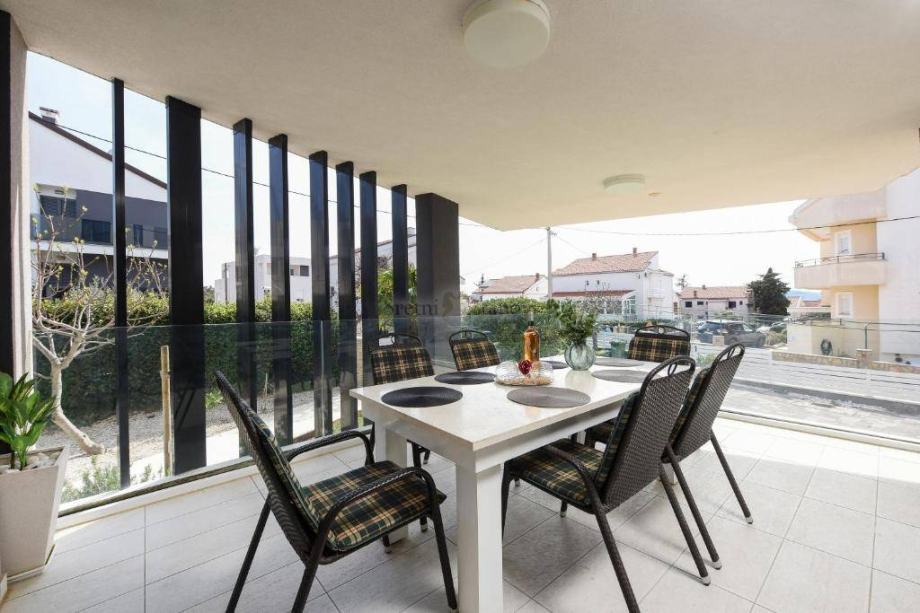 Prodaje se moderan stan s velikom okućnicom na prekrasnoj i praktičnoj lokaciji u Zadru, u dijelu Diklo, na samo 150 metara do mora i lijepe plaže.