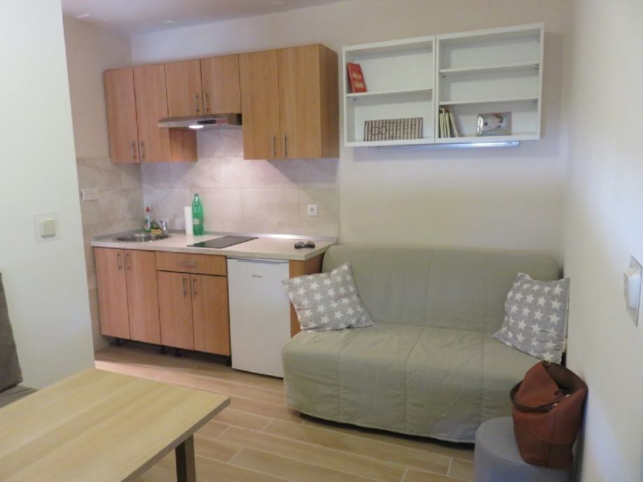Jednosoban stan u visokom prizemlju. Klimatiziran. Za cijelogodišnji najam. Režije po potrošnji. Autobusna stanica pred zgradom. Udaljenost od pješačkog mosta 1,5 km. Obvezna prijava i sklapanje ugovora o najmu. Mob 099/8806222