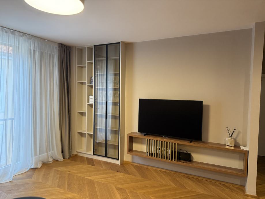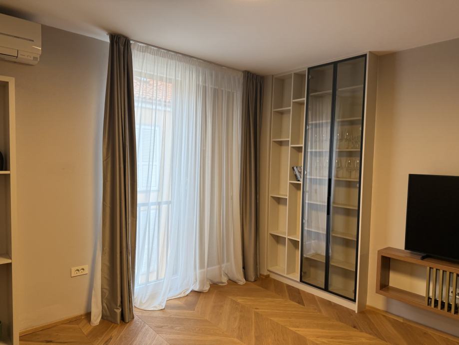 Dugoročno se iznajmljuje jednosobni stan na Poluotoku. Stan je novouređen i potpuno namješten i opremljen Sastoji se od dnevnog boravka sa kuhinjom i blagovaonicom, spavaće sobe, kupaone i spreme/praonice.