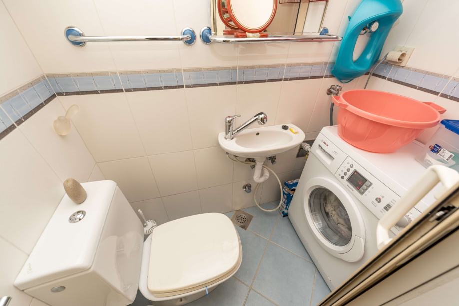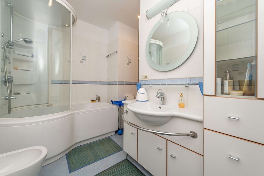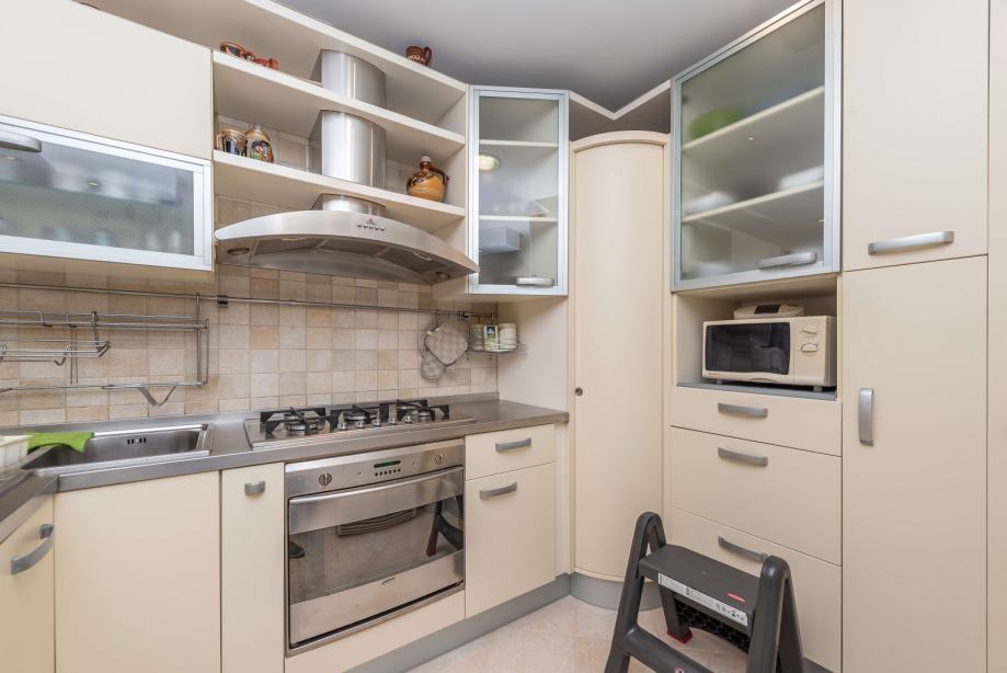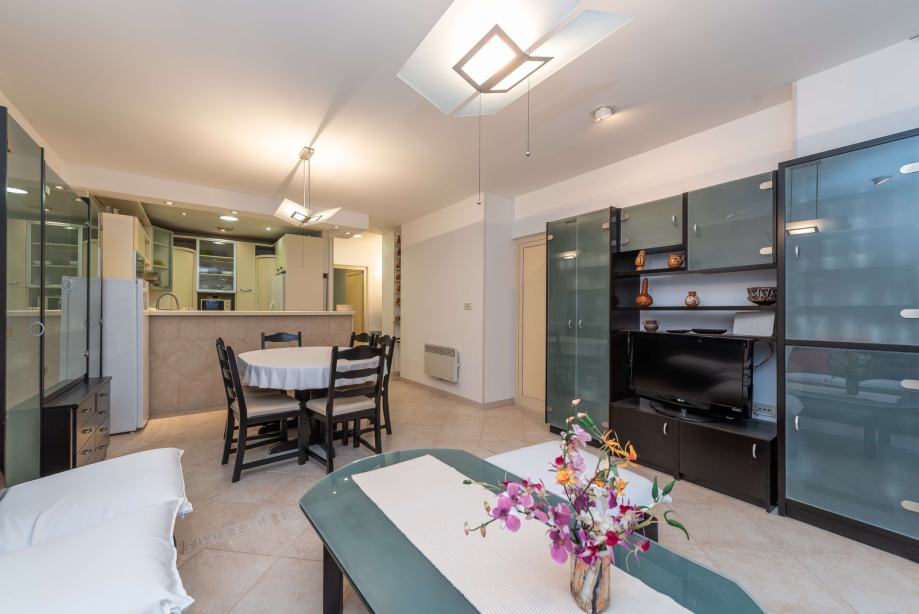 1 kat zgrade čvrste gradnje sa liftom (gradila Tankerska Plovidba), 1 red i pogled na rivu i na more.