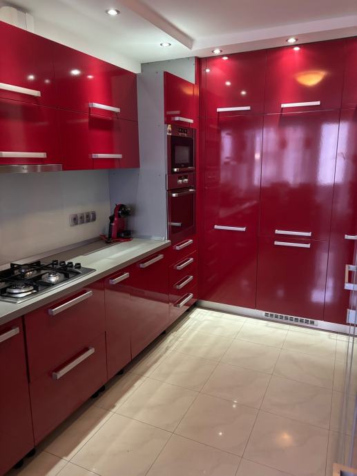Kuhinja je opremljena pecnicom, mikrovalnom, perilicom sudja, ugradbenim friziderom i Dolce Gusto aparatom za kavu.