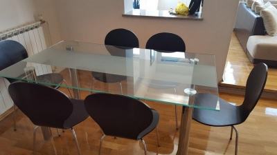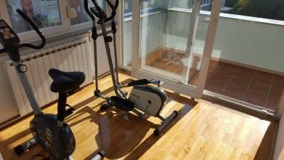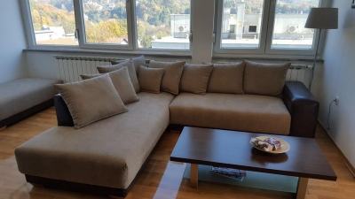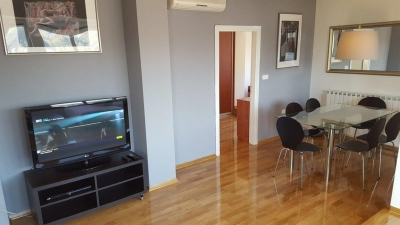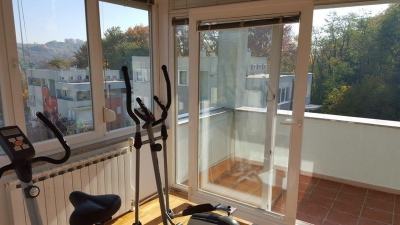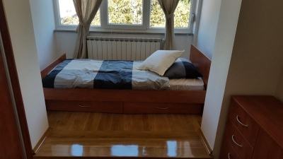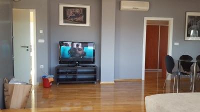Furnished 4-room penthouse (106 m2) on the second floor of an urban villa without an elevator, Prevoj. It consists of a living room, a covered terrace (8 m2), two bedrooms, a study that can also be a bedroom, a kitchen and a bathroom. The apartment has air conditioning, the possibility of optical internet, security doors, gas central heating, mosquito nets on the windows. The rooms can be additionally equipped according to the needs of the tenant. The apartment includes a storage room in the basement (18 m2) and two parking spaces in the courtyard of the building. Possibility of a garage for an additional fee.