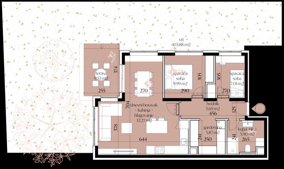Stanovi u prizemlju imaju vrt veličine do 100m2