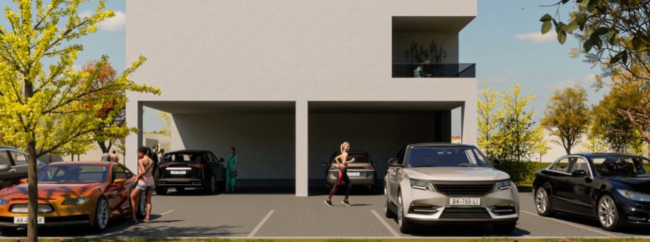 Uz svaki stan je obavezna kupnja vanjskog parkirnog mjesta pozicioniranih na sjevernom i južnom dijelu parcele.