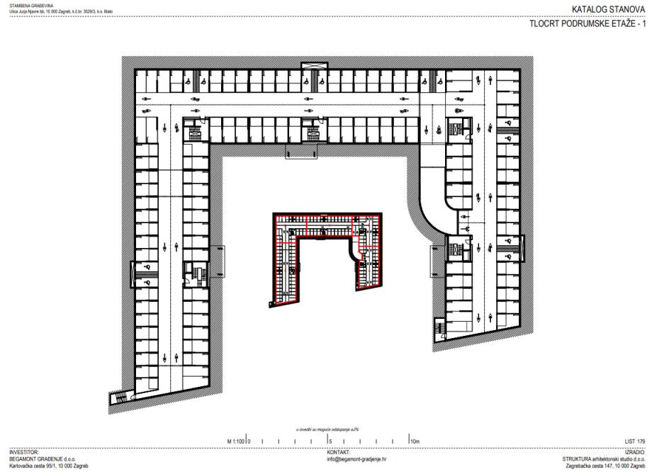 • Podrum -1 sadrži 109 garažnih/parkirno garažnih mjesta