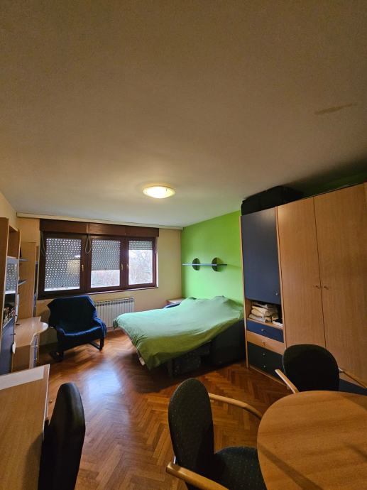 Stan se nalazi u mirnom kvartu, pogled sa prozora je prema visokom drveću iza kojeg se nalazi sportsko igralište za nogomet, košarku, atletiku, te srednja/osnovna škola.