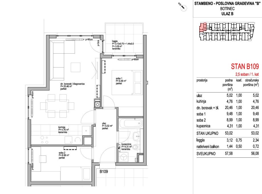 Stambena građevina Stambeno - poslovna građevina „B“ BOTINEC, Ulica dr. Luje Naletilića