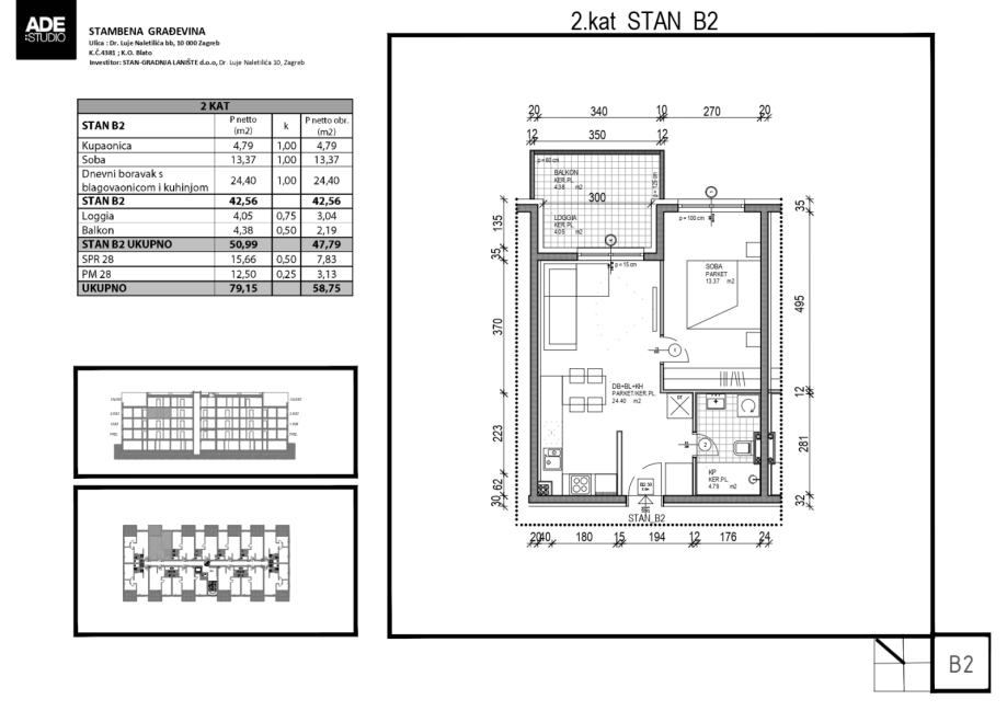 Stan B2 se nalazi unutar novoizgrađene stambene zgrade u naselju Botinec - ulica Dr. Luje Naletilića bb.