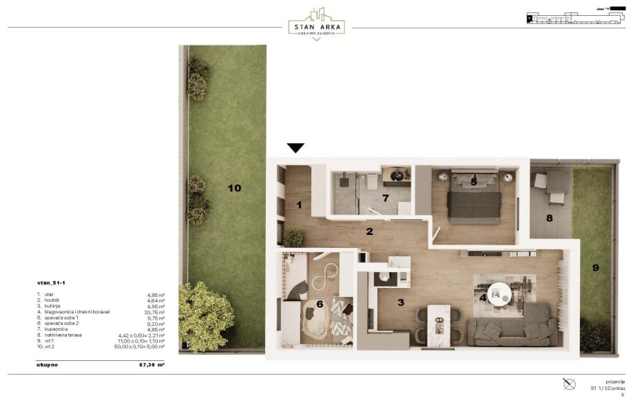 STAN S1-1-61,20 m2, 3-sobni, nalazi se u prizemlju (ULAZ 1)