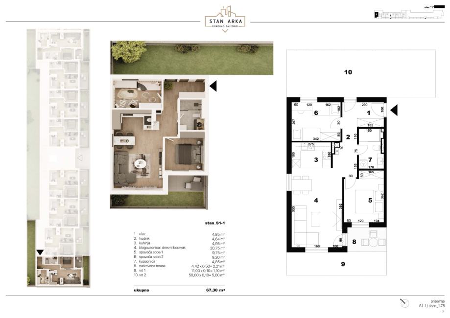 Ukupna površina s parkirnim mjestom i spremištem 73,30m2
