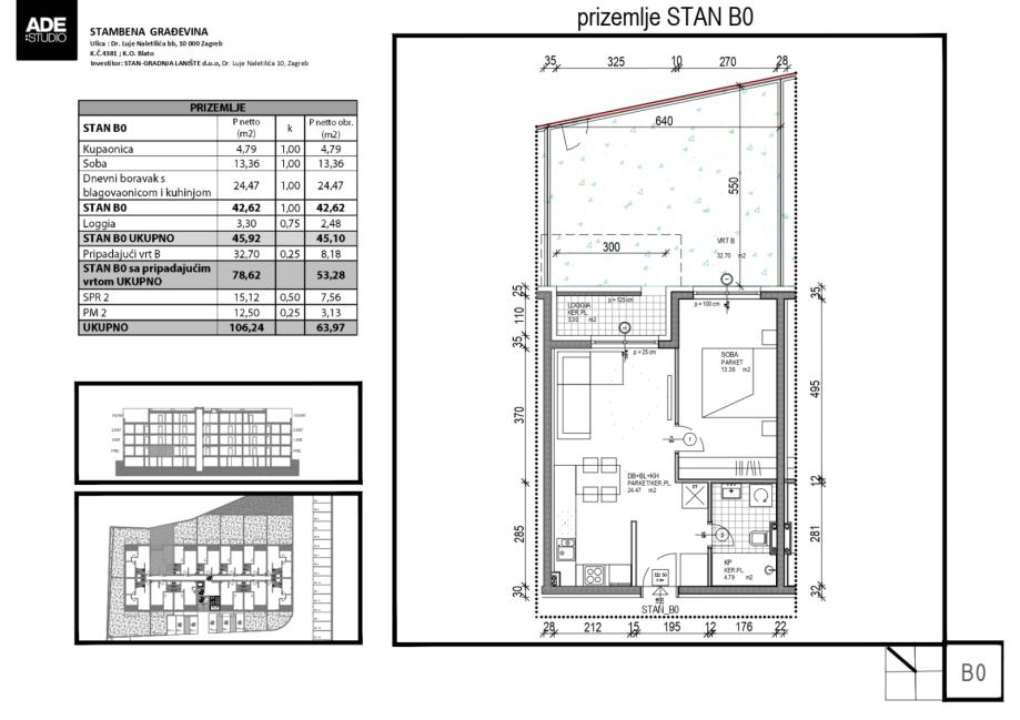 Stan B0 se nalazi unutar novoizgrađene stambene zgrade u naselju Botinec - ulica Dr. Luje Naletilića bb.