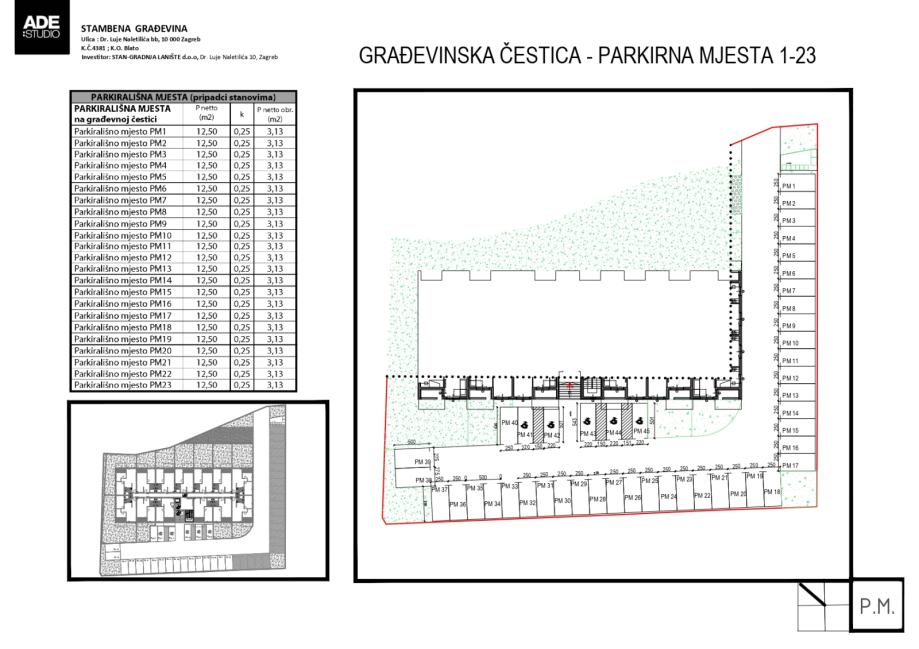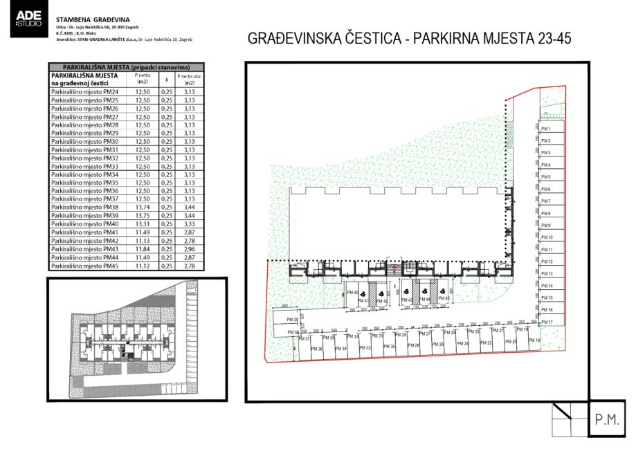 Parkiranje je osigurano sa 45 parkirališnih mjesta koji se nalaze oko zgrade.