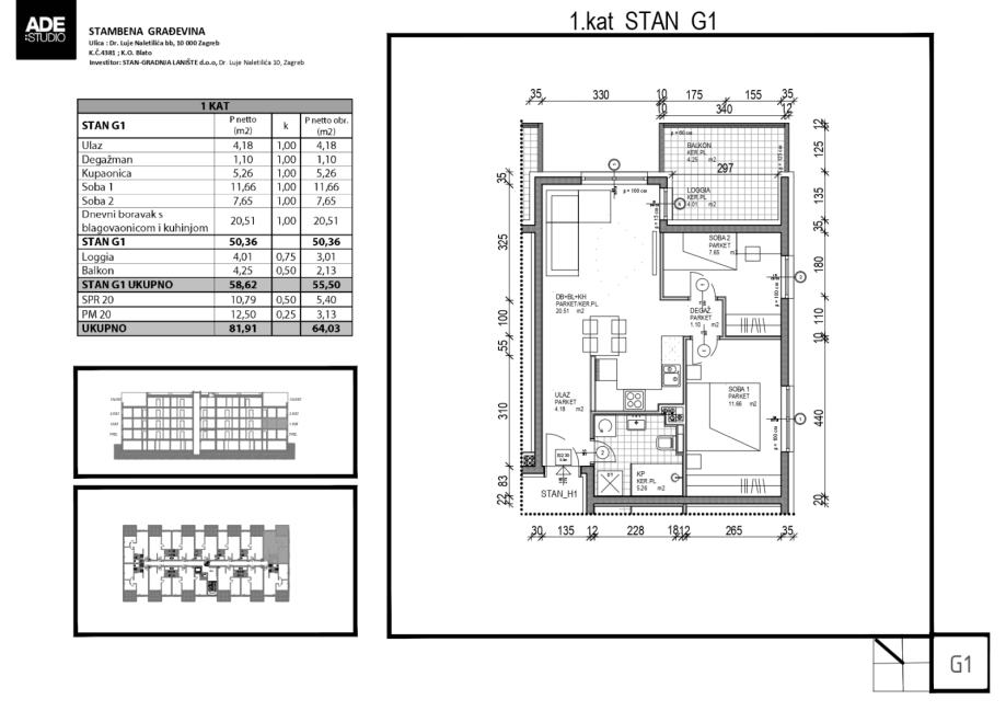 Stan G1 se nalazi unutar novoizgrađene stambene zgrade u naselju Botinec - ulica Dr. Luje Naletilića bb.
