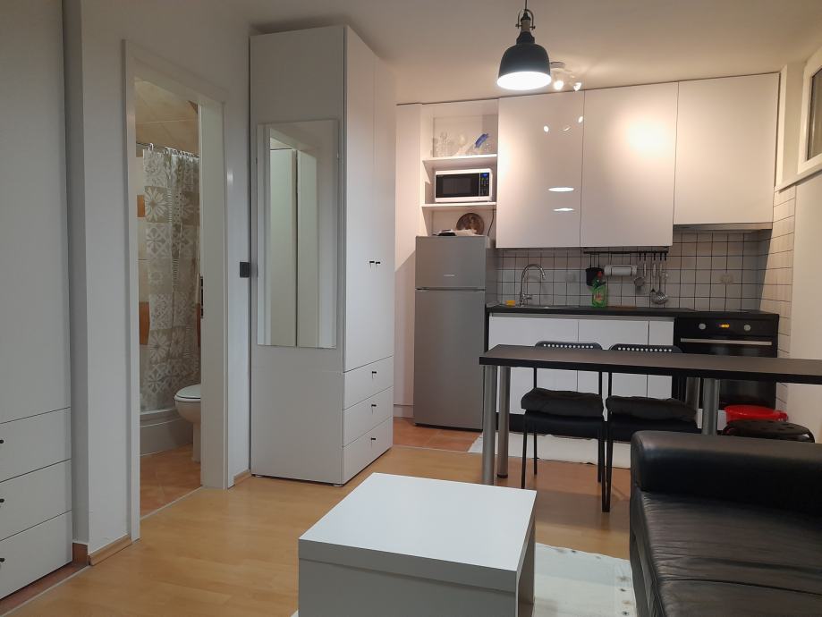 Garsonijera u prizemlju kuće koja se sastoji od kuhinje, blagovaone i dnevno/spavaćeg dijela u jednoj prostoriji, kupaone s toaletom i ostave.