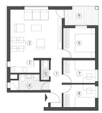 Zgrada od osam stanova nalazi se u slijepoj ulici na blagom brijegu što osigurava mir i lijep pogled, a opet nudi dobru povezanost s glavnim prometnicama. To je mirno i sigurno obiteljsko naselje. Zgrada u kojoj se stan nalazi prilagođena je suvremenim trendovima i potrebama obiteljskog stanovanja, stanovi su svijetli i udobni, s ciljem postizanja optimalnog omjera iskorištenosti prostora i kvalitete boravka putem promišljenog projektiranja i dobro osmišljenih tlocrta.