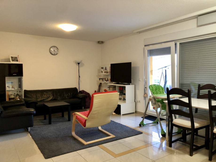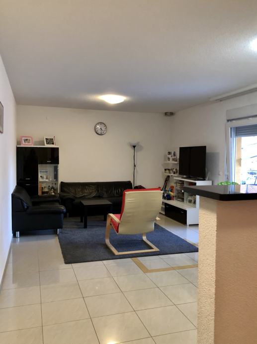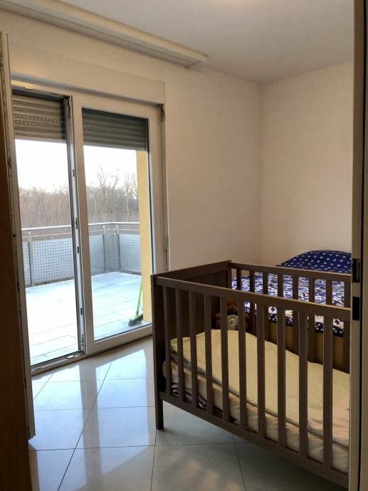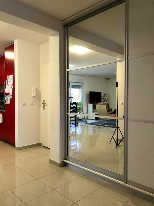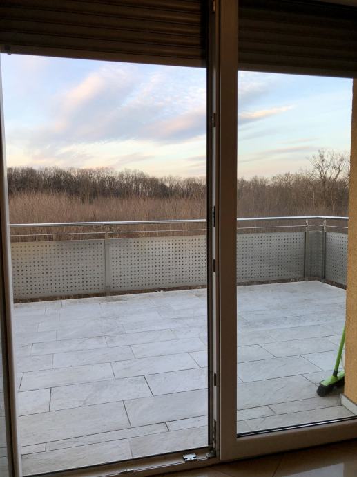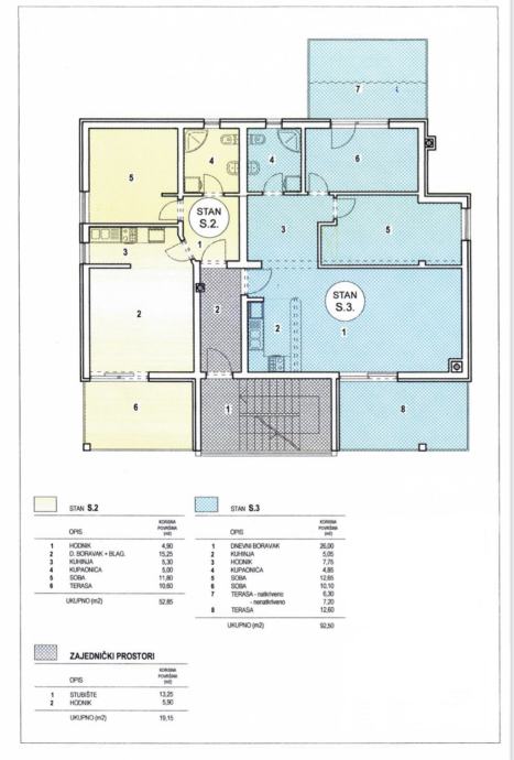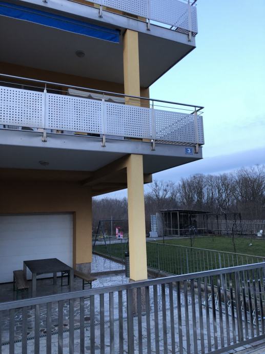 Prodaje se stan (S3) na 1. katu veličine 66,40 m2 s dvije velike terase 12,60 m2 i 13,50 m2. Stanu pripada i jedno parkirno mjesto te vrt od 235,24 m2. Ukupna neto kvadratura nakon obračuna koeficijenata iznosi 103,67 m2.