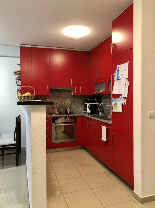 Kuhinja je opremljena svim aparatima, hladnjak sa zamrzivačem, štednjakom, pećnicom i napom, osim perilice suđa koju je moguće ugraditi.