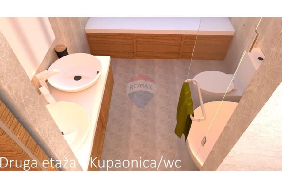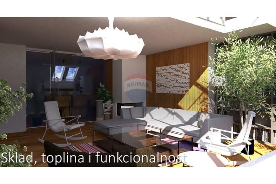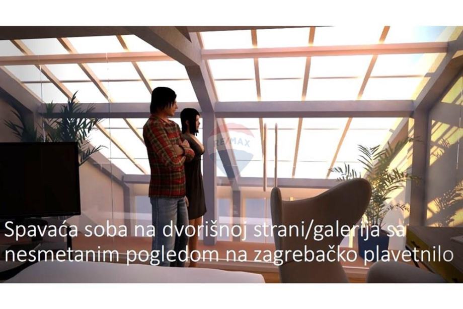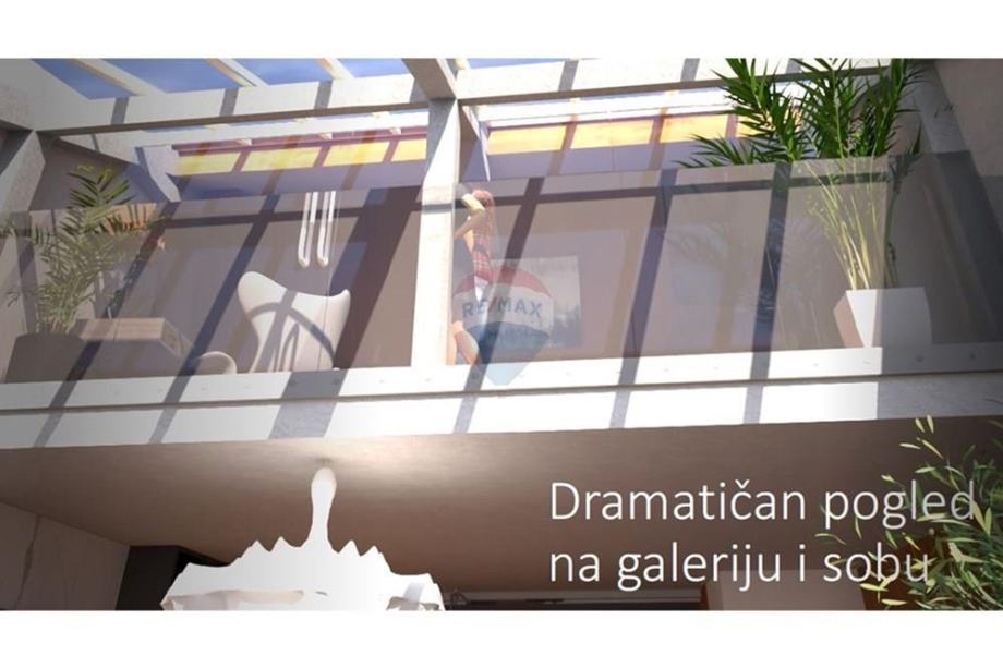 Već pri ulasku dočekuje vas ulazni hol koji vodi u pažljivo osmišljen raspored prostorija. Na prvoj etaži nalazi se spavaća soba, kupaonica s toaletom te impresivan, prostrani dnevni boravak obasjan prirodnim svjetlom zahvaljujući krovnim električnim staklenim prozorima. Upravo ti stropni prozori daju prostoru posebnu arhitektonsku notu i stvaraju jedinstven, prozračan ambijent. Kuhinja s blagovaonicom u produžetku dnevnog boravka čini savršeno središte doma idealno mjesto za druženja, obiteljske trenutke i stvaranje uspomena.