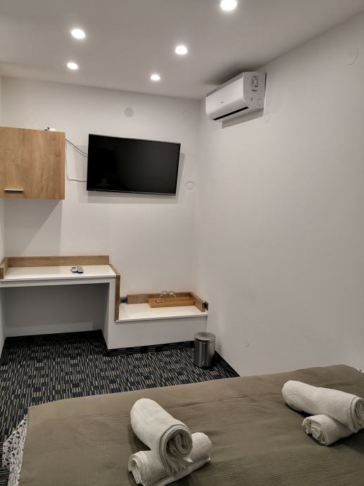 U stanu se nalazi visoko kvalitetean bracni krevet dimenzije 160 x 200, plazma 108 cm Panasonic, klima, mali frizider i kuhalo. U stan nema kuhinje, smjestaj ureden hotelski. Tramvajska stanica odmah ispred ulaza u zgradu.
