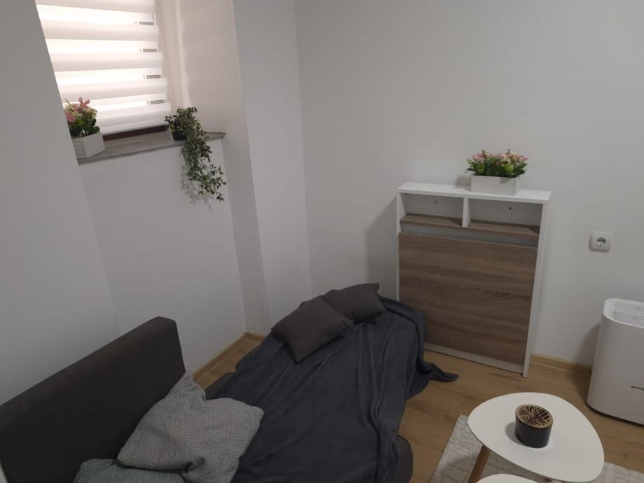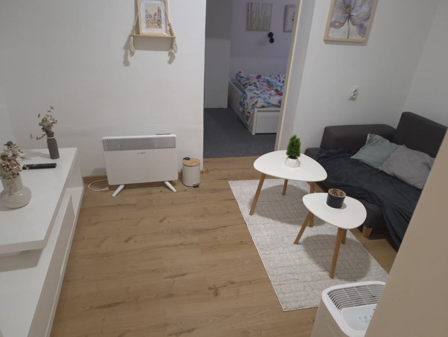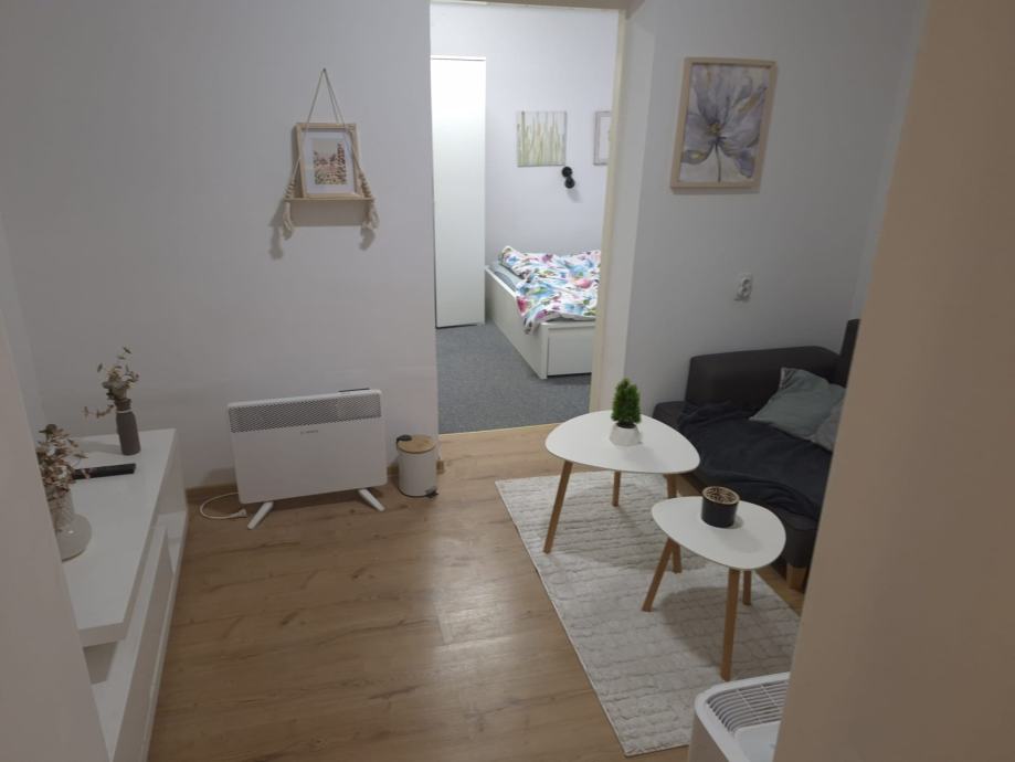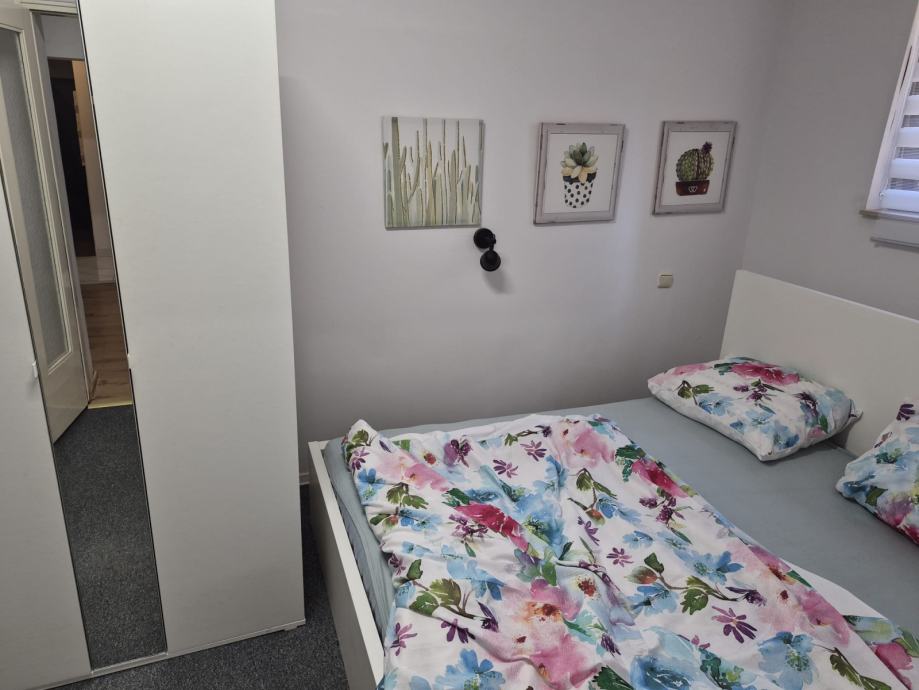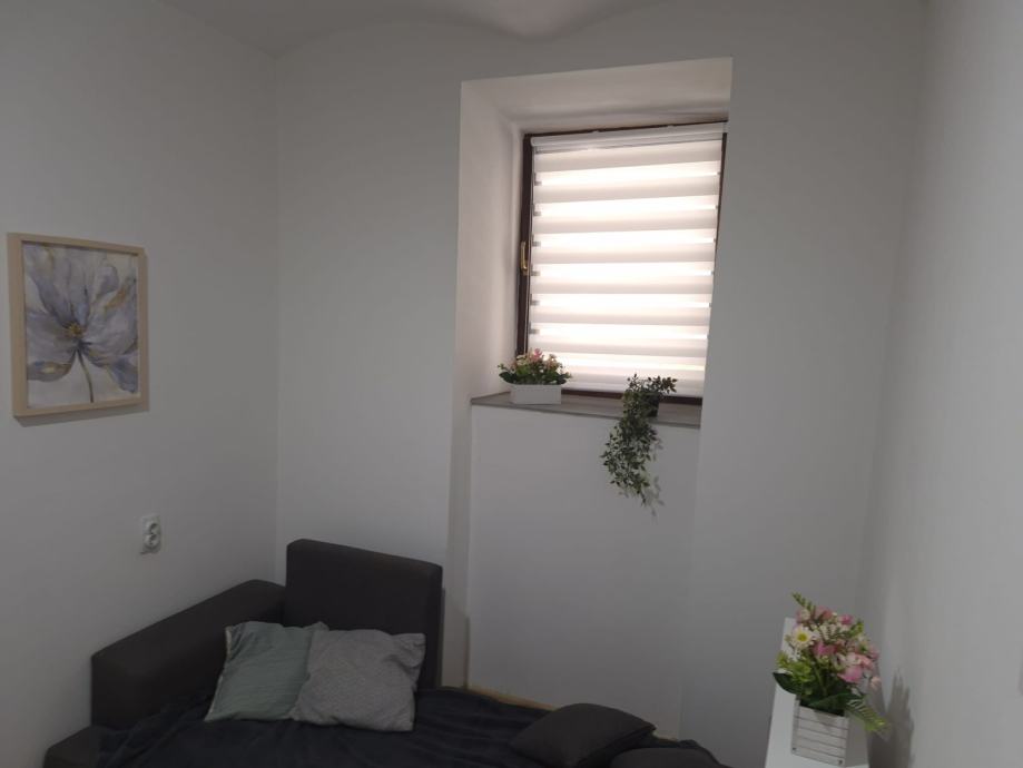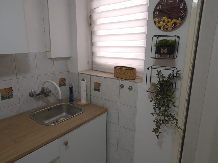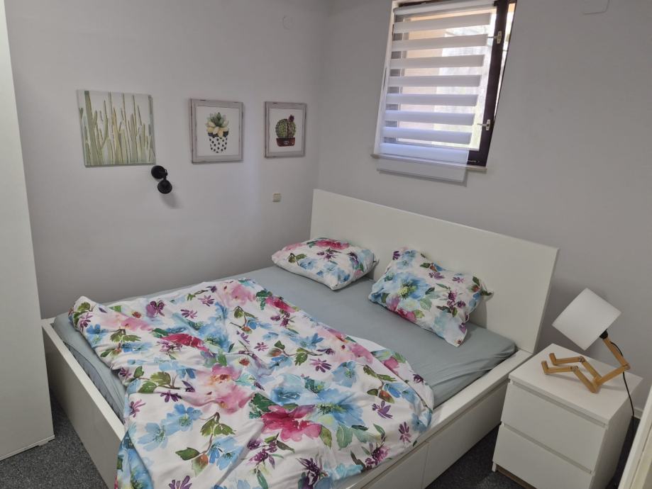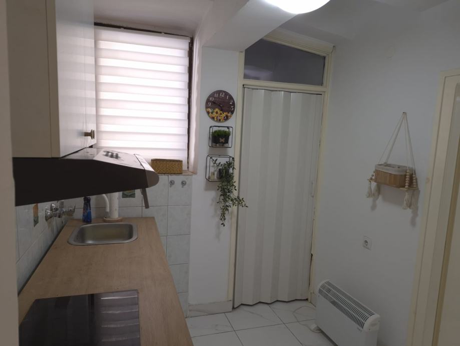 Kvadratura: 39 m², funkcionalno uređen prostor u suterenu, velika spavaca soba od 15 kvadrata u koju komotno stane jos jedan krevet i ormar sa suprotne strane. Uz to ima dnevni boravak, kuhinju, kupaonu sa tus kabinom, i dva spremista(jedan u hodniku jedan u kuhinji). Jako dobar tlocrt