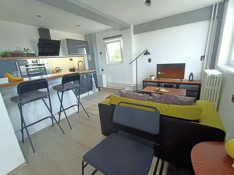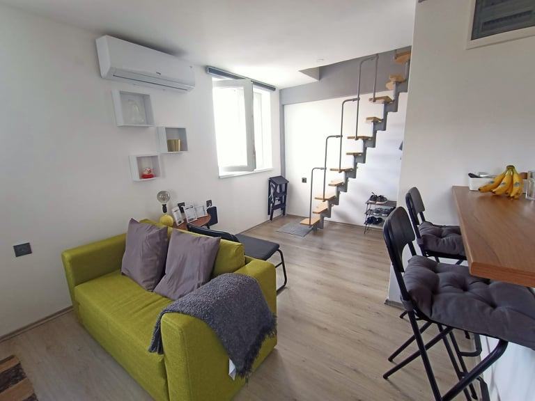 Jednosobni dvoetazni stan s pogledom na centar grada. Stan se nalazi na 9. i 10. katu, te ima lift.
