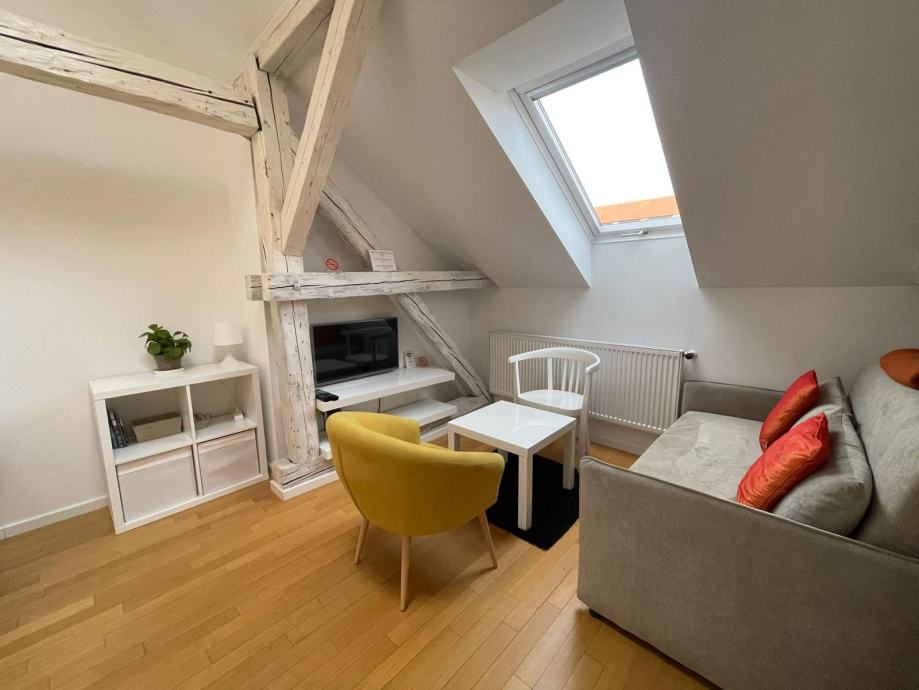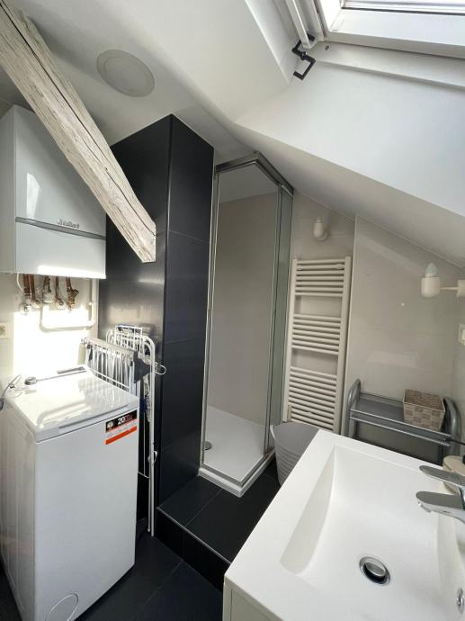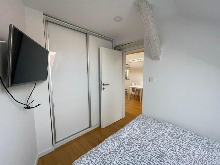 Britanac, Kačićeva ulica 1. Stan u potkrovlju, koji se sastoji od dnevnog boravka i kuhinje, kupaonice, sobe i galerije sa dodatnim ležajem za jednu osobu. Podne površine 44,13 m2 kojem pripada podrumska ostava oznake 4A podne površine 8,34 m2. Stan u potpunosti funkcionalan i spreman za useljenje. Također i spreman za dugoročni ili kratkoročni najam. Prodaje fizički vlasnik, bez agencijske provizije, vlasništvo uredno 1/1, ZK izvadak u prilogu sa slikama.