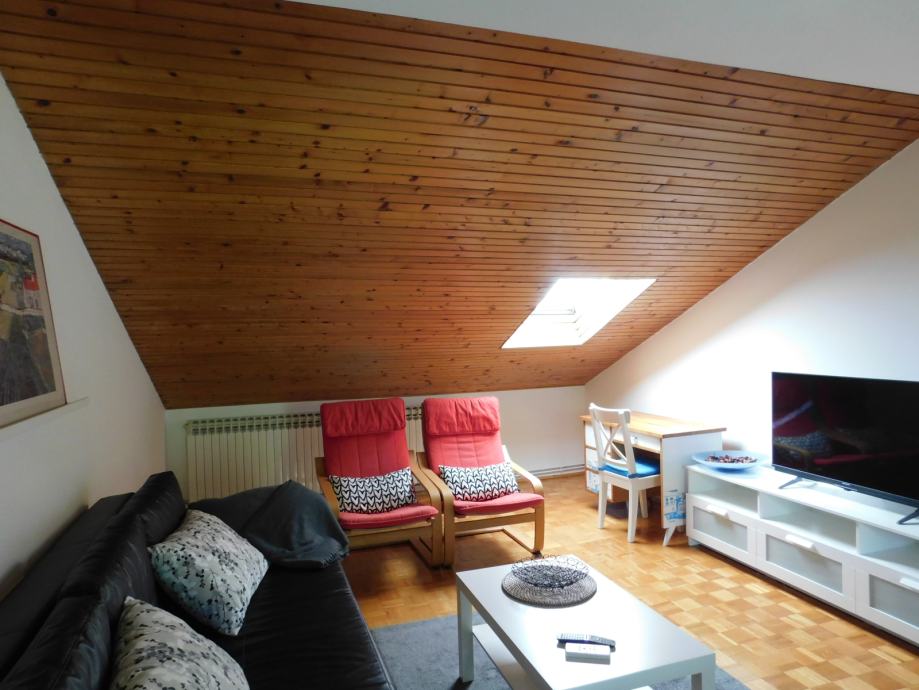 Iznajmljuje se dvosoban namješten stan od 50m2 u potkrovlju obiteljske stambene zgrade Bučarova ulica, općina centar. Sastoji se od dnevnog boravka s kuhinjom i blagovaonicom, spavaće sobe, kupaonice, ulaznog hodnika i balkona. Do tramvajske stanice na Ilici pješice je