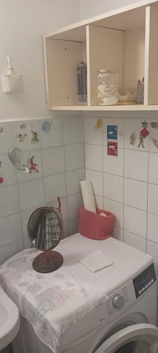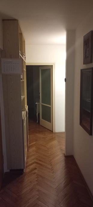 The apartment consists of three rooms, making it ideal for a family or shared living. It is spacious and filled with natural light, fully furnished and with a fully equipped kitchen. Heating is provided by building-wide central heating, and the apartment is equipped with air conditioning for added comfort during the summer months. There is also a large enclosed balcony, perfect for relaxation, and the apartment includes an additional storage area in the basement, measuring 6 m².