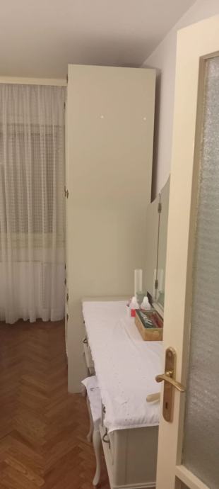 Površina i raspored: Stan ima tri sobe, idealan za obitelj ili više osoba. Prostran i svijetao, s namještajem i potpuno opremljenom kuhinjom. Etažno centralno grijanje od zgrade, a stan posjeduje i klima uređaj za dodatnu udobnost tijekom ljetnih mjeseci. Stan ima i prostrani zatvoreni balkon,a uz stan dolazi još i podrum površine 6 m², idealan za dodatno skladištenje.