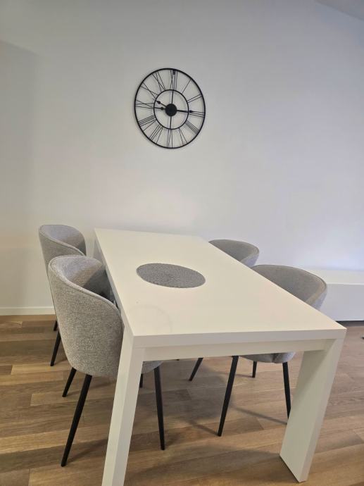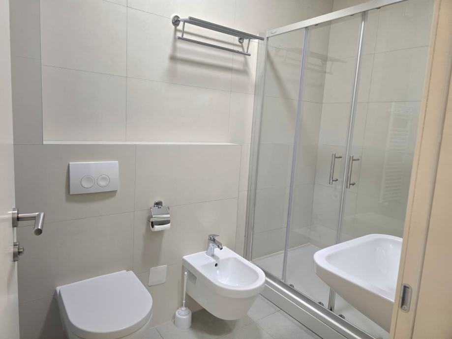 Iznajmljuje se stan u novijoj zgradi, u visokom prizemlju. Stan se sastoji od ulaznog dijela, prostranog otvorenog prostora boravak/blagovaonica/kuhinja, te spavaćeg dijela sa dvije prostrane spavaće sobe i kupaonice. Grijanje je plinsko etažno, a u kupaonici i kuhinji je podno. Stan je kompletno namješten i opremljen, te namijenjen isključivo za dugoročan najam pouzdanim najmoprimcima.