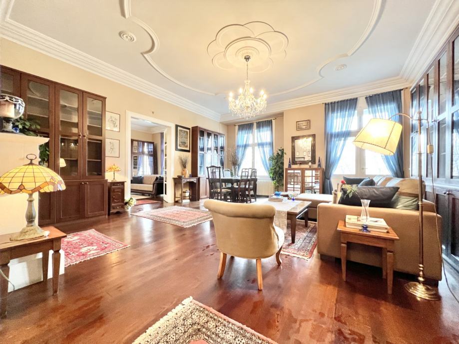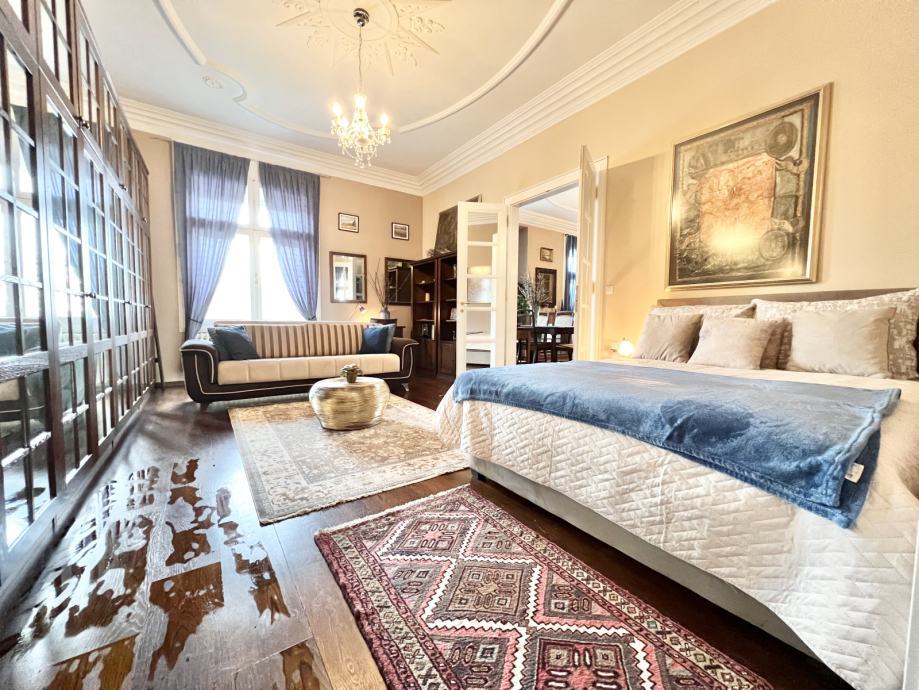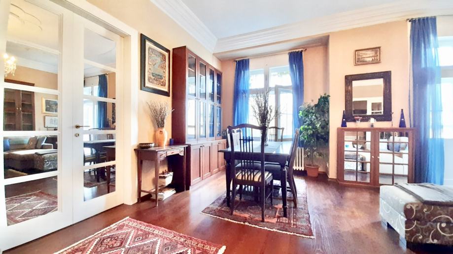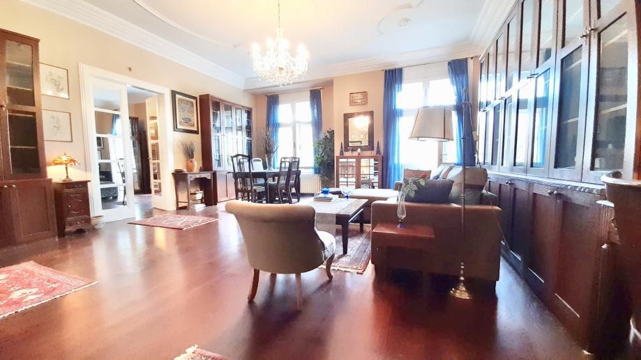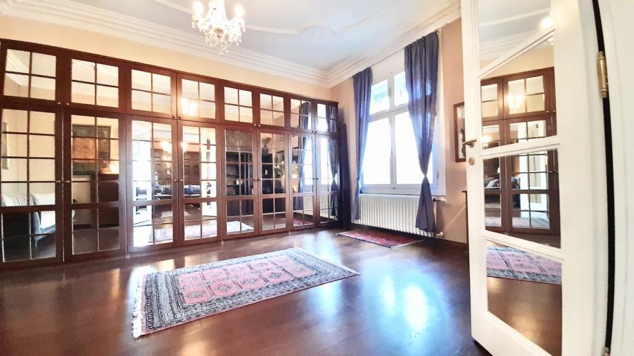 Luksuzan građanski stan od 161 m2 smješten unutar Lenuzzijeve potkove, Trg Mažuranića, u jednoj od najljepših zgrada u Zagrebu. Nalazi na drugom katu zgrade s liftom.