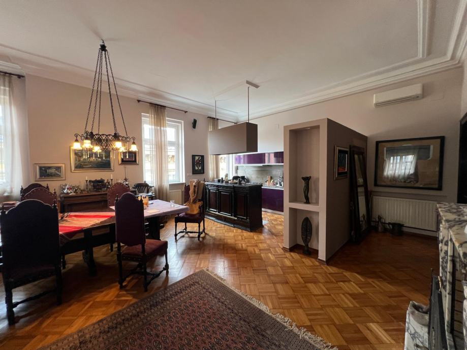 U neposrednoj blizini Cvjetnog trga, u jednoj od najpoželjnijih mikrolokacija u centru grada, iznajmljuje se jedinstven dvoetažni građanski stan koji spaja klasičnu zagrebačku eleganciju i suvremeni komfor. Riječ je o nekretnini iznimne rijetkosti na tržištu – stan je uređen za osobne potrebe vlasnika, s naglaskom na kvalitetu, estetiku i funkcionalnost, a ne za komercijalnu upotrebu.