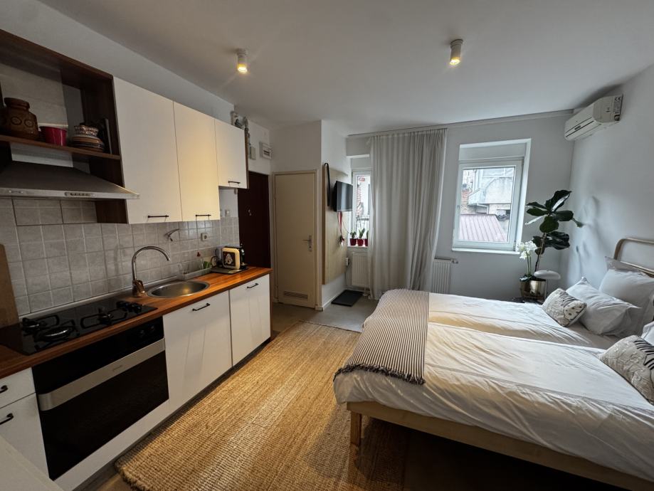 Gundulićeva ulica, jednosoban stan površine 30 m2 na 1. katu kvalitetno građene i održavane zgrade iz 1980. godine bez lifta.Sastoji se od ula, dnevnog boravka, kuhinje i blagovaonice, spavaće sobe i kupaonice.