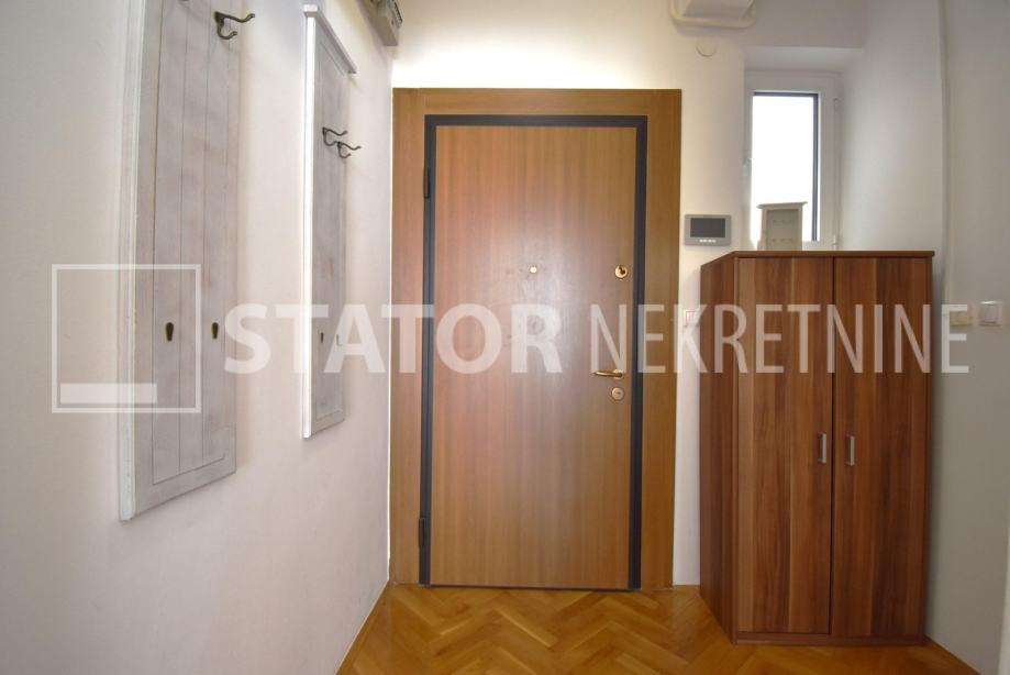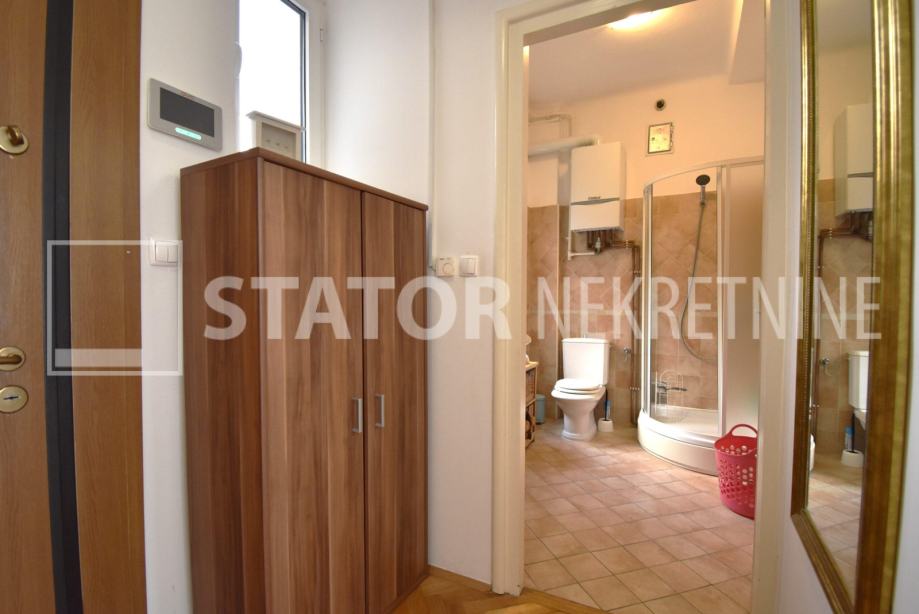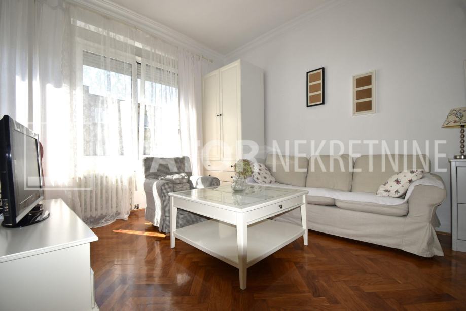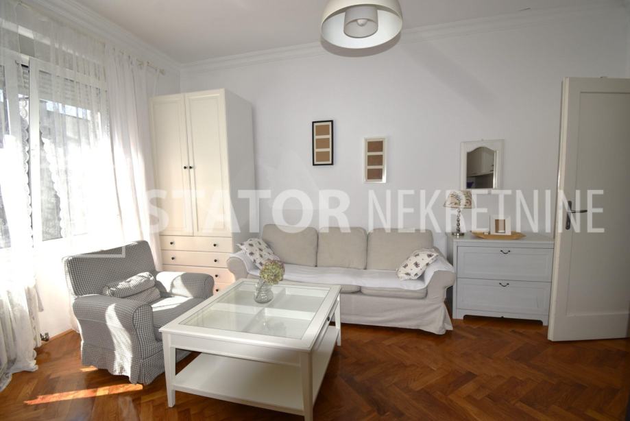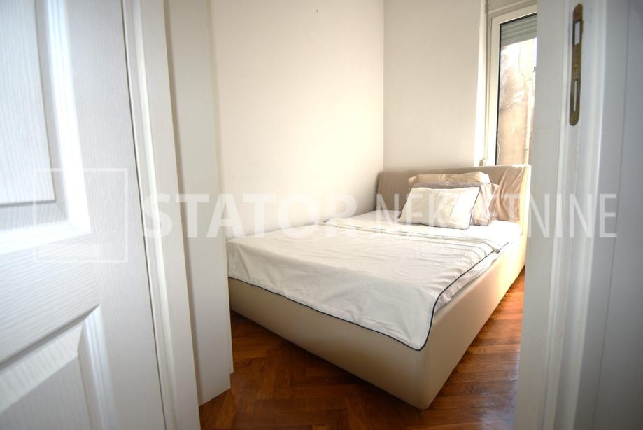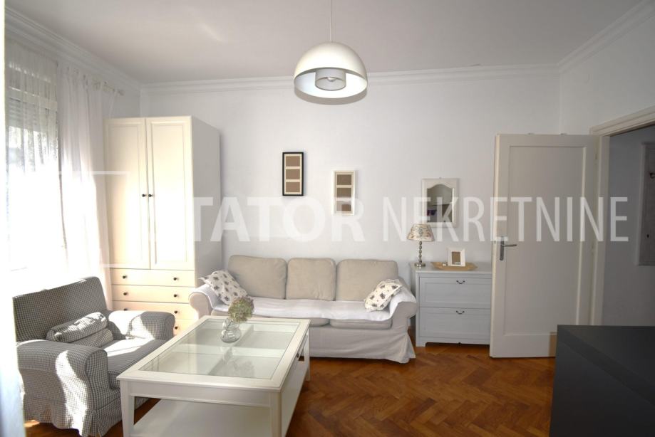 CENTAR, iznajmljuje se dvosobni, svijetao stan u zgradi sa liftom. Sastoji se od ulaznog hodnika, ravno od ulaza dnevne sobe u sklopu koje je i kuhinja sa prostorom za blagovanje. Lijevo iz boravka nalazi se spavaća soba. Iz hodnika također lijevo je kupaonica. Stan je u potpunosti namješten; hodnik sa manjim ormarima, dnevna soba sa trosjedom, stolićem, ormarom, komodom i TV – om, spavaća soba sa krevetom i još jednim manjim ormarom, kuhinja sa elementima, hladnjakom i škrinjom za zamrzavanje, peći sa pećnicom, stol za blagovanje, klupa za sjedenje ima i prostor za odlaganje, stolica, opremljene kupaonica sa WC – om. Grijanje je etažno, plinsko, klima. Cijeli stan je okrenut na dvorišnu, mirnu, sunčanu, zapadnu stranu. ODLIČAN STAN NA POŽELNOJ ADRESI !!!! STAN JE SLOBODAN ZA NAJAM OD 01.02.2026. GODINE!!!!!