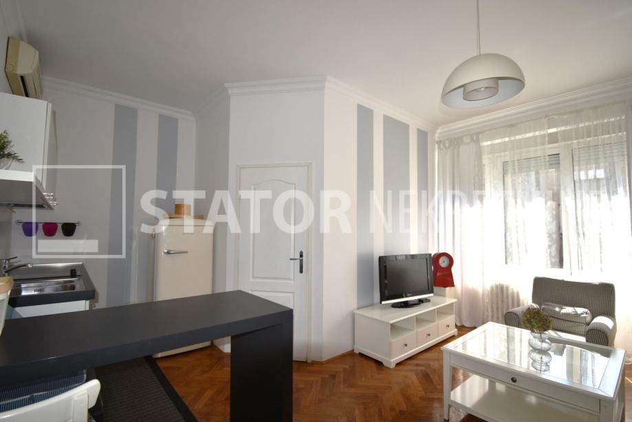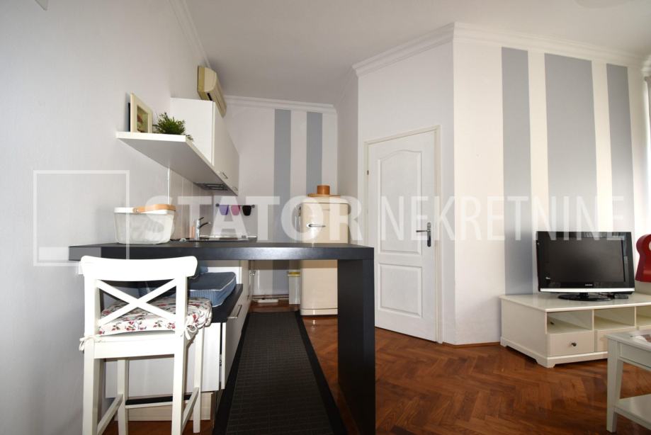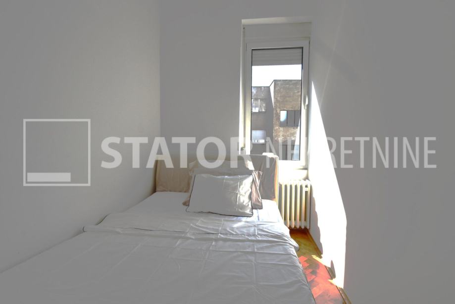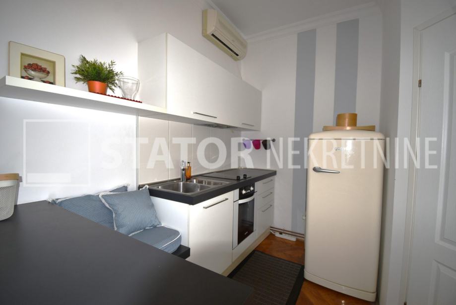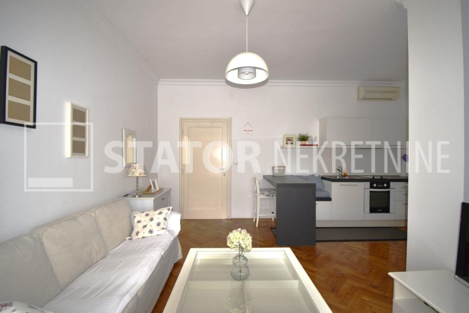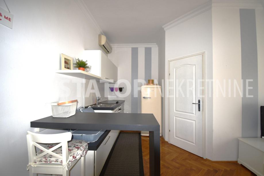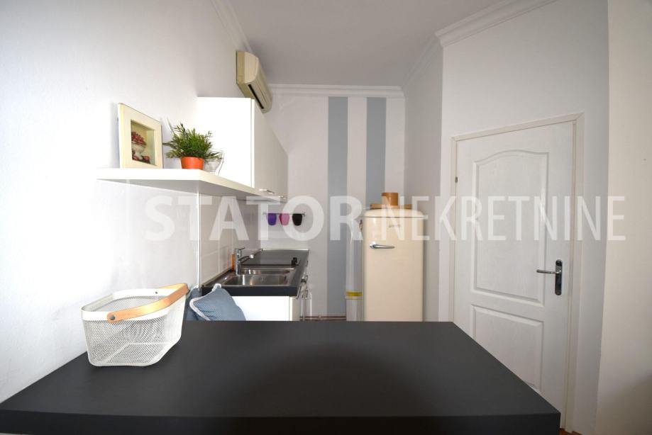 CENTAR, iznajmljuje se dvosobni, svijetao stan u zgradi sa liftom. Sastoji se od ulaznog hodnika, ravno od ulaza dnevne sobe u sklopu koje je i kuhinja sa prostorom za blagovanje. Lijevo iz boravka nalazi se spavaća soba. Iz hodnika također lijevo je kupaonica. Stan je u potpunosti namješten; hodnik sa manjim ormarima, dnevna soba sa trosjedom, stolićem, ormarom, komodom i TV – om, spavaća soba sa krevetom i još jednim manjim ormarom, kuhinja sa elementima, hladnjakom i škrinjom za zamrzavanje, peći sa pećnicom, stol za blagovanje, klupa za sjedenje ima i prostor za odlaganje, stolica, opremljene kupaonica sa WC – om. Grijanje je etažno, plinsko, klima. Cijeli stan je okrenut na dvorišnu, mirnu, sunčanu, zapadnu stranu. ODLIČAN STAN NA POŽELNOJ ADRESI !!!! STAN JE SLOBODAN ZA NAJAM OD 01.02.2026. GODINE!!!!!