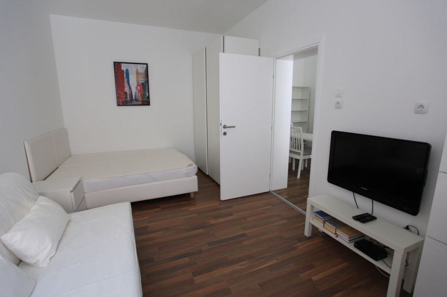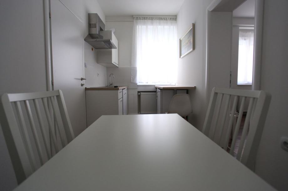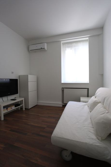 Jako lijep novo namješten stan u zgradi na prestižnoj lokaciji, strogi centar grada iznajmljuje se . Sastoji se od d. boravka,kuhinje, blagavaone, kupatilo,wc, hodnika i terase.