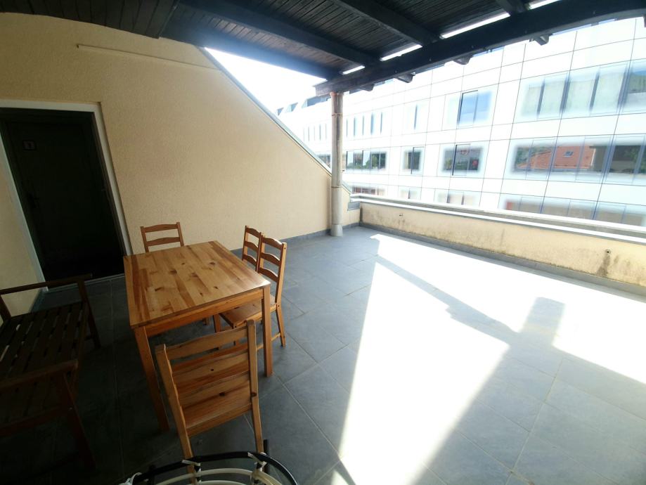 Dakle, na zadnjem katu zgrade nalaze se stan, terasa i spremište te se kao takav i iznajmljuje, sa svim pripadajućim sadržajima.