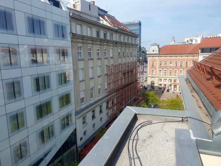 prostrane terase s pogledom na Ban centar, Europski trg i Trg bana Jelačića.