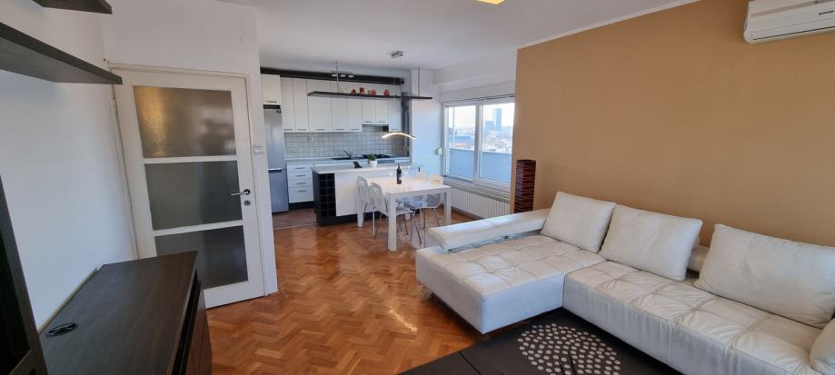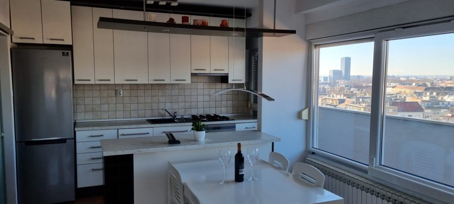 Apartment in the Centre, a skyscraper in Vlaška Street, located on the 10th floor with elevator, the size of 58m2 + 20 m2 balcony. Completely renovated in 2015. Gas central heating. It consists of hallway, bedroom, living room, kitchen, dining room, bathroom with toilet and balcony. Orientation is north / west. Close to public transportation. Possibility A1 and ISKON internet connection. The rental price does not include utilities. Pets are not allowed. Preferably, the rent for a minimum one year. Deposit is one rental amount. Mob. 091/3653184 and 099/7302185