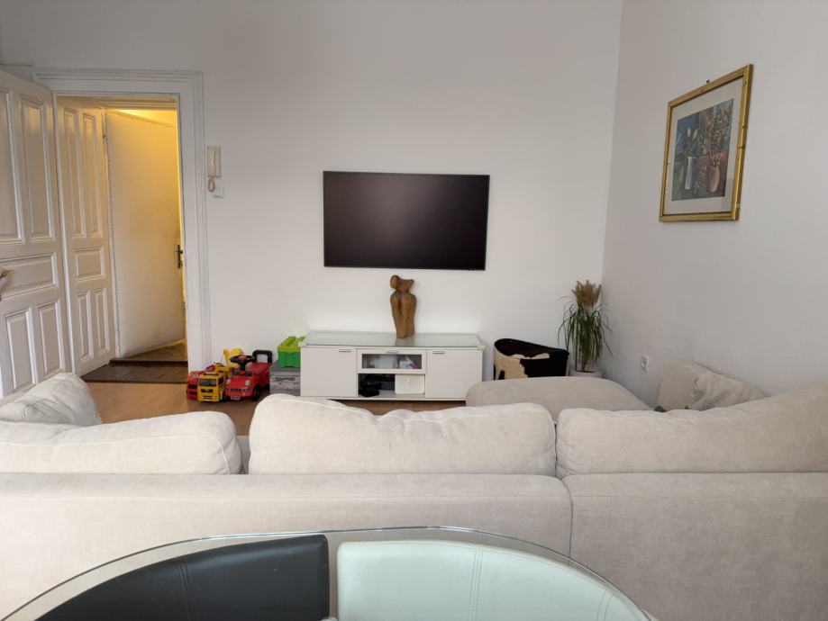 Iznajmljuje se trosobni stan (86 m2) na prvom katu stambene zgrade u strogom centru Zagreba na samo minutu hoda od Trga bana Josipa Jelačića.