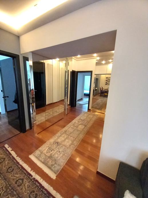 Moderno uređeni stan na III katu u zgradi s LIFTOM (lift kompletno uređen) + garaža, s pogledom na Katedralu i niz ulicu. Kompletno novoadaptiran i namješten, sastoji se od velikog dnevnog boravka, kuhinje s blagovanjem, četri spavaće sobe, dvije kupaonice, dvije garderobe, balkona i zatvorene lođe. Orjentacije ISTOK-ZAPAD .