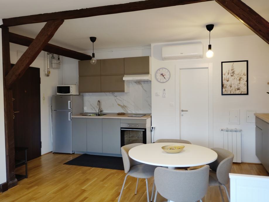 Iznajmljuje se jednosoban stan u Ilici, smješten na drugom katu stambene zgrade. Stan je kompletno renoviran 2025 godine, te potpuno namješten sa novim namještajem, te novim električnim uređajima ( hladnjak, perilica suđa, napa, perilica rublja). Također potpuno nove instalacije u stanu, odvod, voda, struja, te plinsko etažno grijanje i klima uređaj. Stan je orjentiran na sjever, puno dnevnog svjetla, nema vlage, potpuno suh i prozračan, s pogledom na dvorište. Smješten je između Slovenske i Mandaličine, u blizini trgovine, škola, vrtića, bolnica. Blizina tramvajske stanice, te javni parking. Do centra treba 15 minuta pješice ili četiri tramvanjske stanice do Trga bana Jelačića.