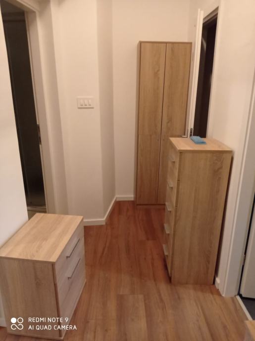 RENOVIRANO 2025. – sve je novo: podovi, prozori (PVC), električna instalacija, vodovod, unutarnja stolarija. Stan je potpuno namješten i opremljen bijelom i crnom tehnikom, ukjučujući klima-uređaj (grijanje/hlađenje), TV, veš mašinu i ostale sadržaje za neposredno useljenje.
