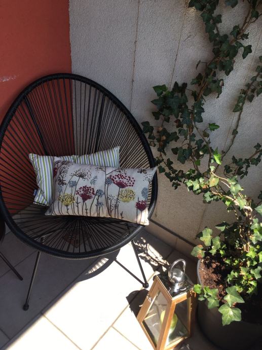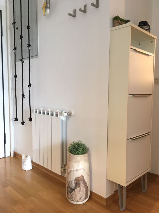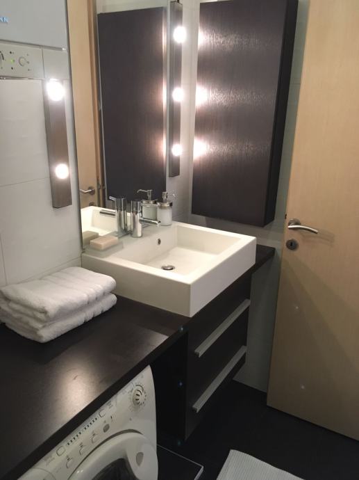 Moderan stan, u potpunosti opremljen novim namještajem, kućanskim uređajima (perilica posuđa, perilica rublja, pećnica, TV, frižider, klima, internet velike propusnosti) te svom ostalom kućanskom opremom (posuđe, posteljina i dr.). Veliki walk in ormar, smart home sustav. Mnogo svjetla, prekrasno, visoko-kvalitetno uređenje.